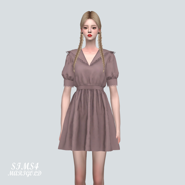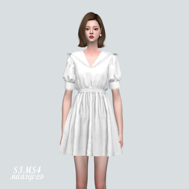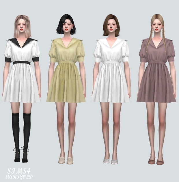 [Sims4 CC] Ribbon 3U Sailor Collar Mini Dress V2_리본 3U 세일러 카라 미니 드레스 V2_여자 의상