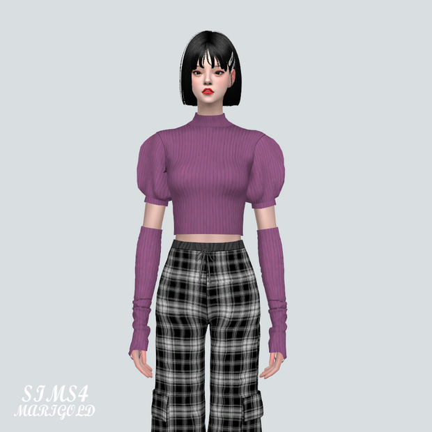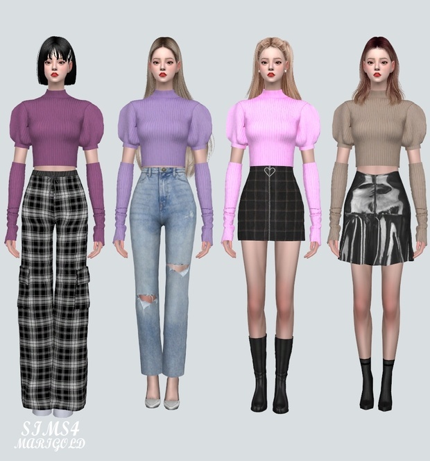 심즈4 반목 니트 퍼프소매티와 팔 워머가 붙어있어요.