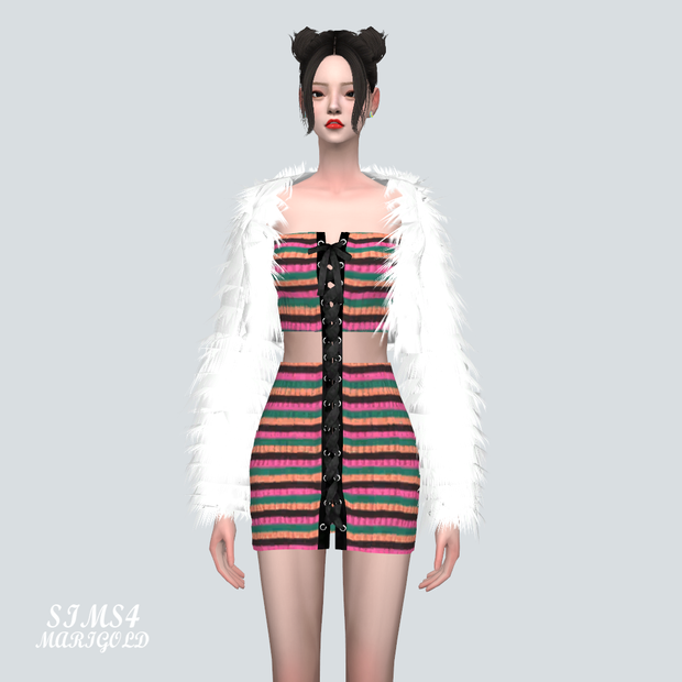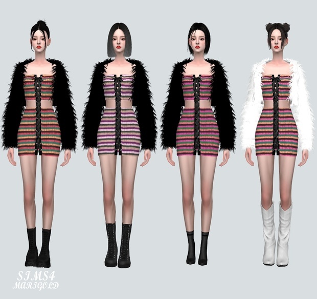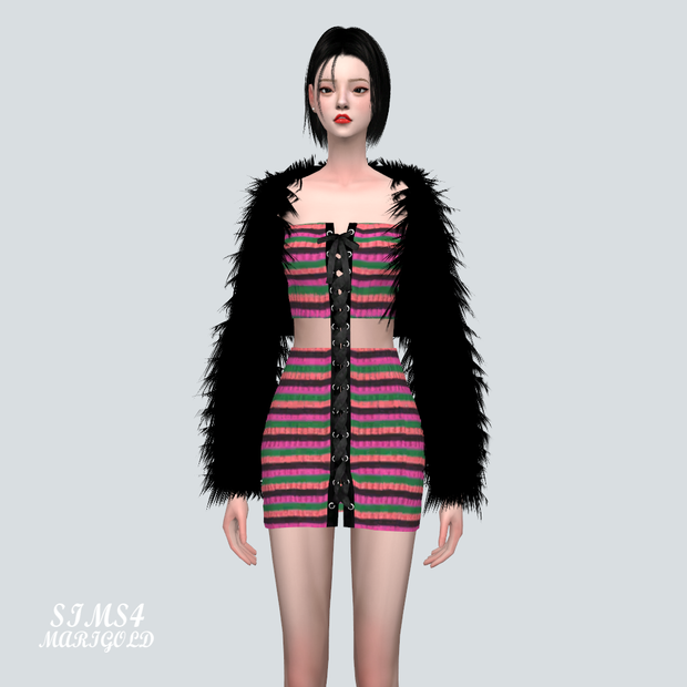 [Sims4 CC]9 Crop Fur Jacket With Lace-Up Mini Dress V2_9 크롭 퍼 자켓과 레이스 업 미니 드레스 V2_여자 의상