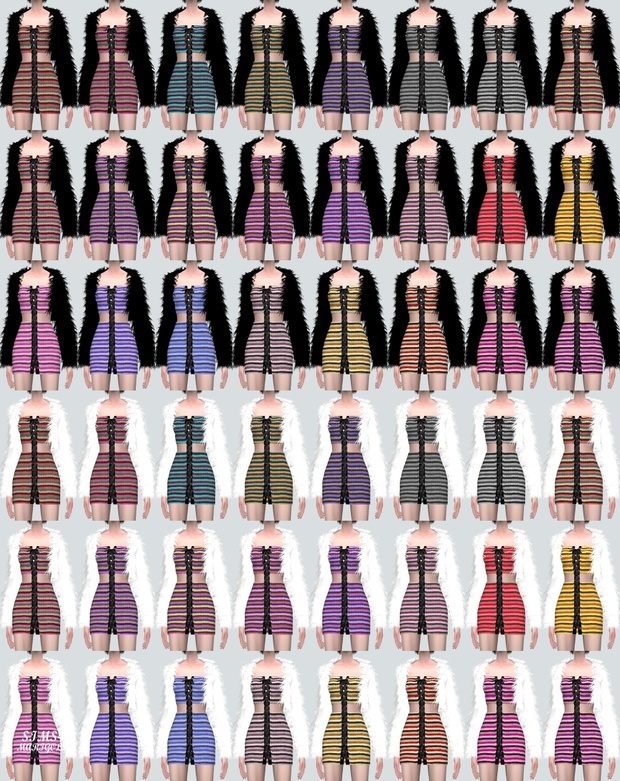 심즈4 크롭 퍼 자켓과 레이스업 줄무늬 미니 원피스가 붙어있습니다.