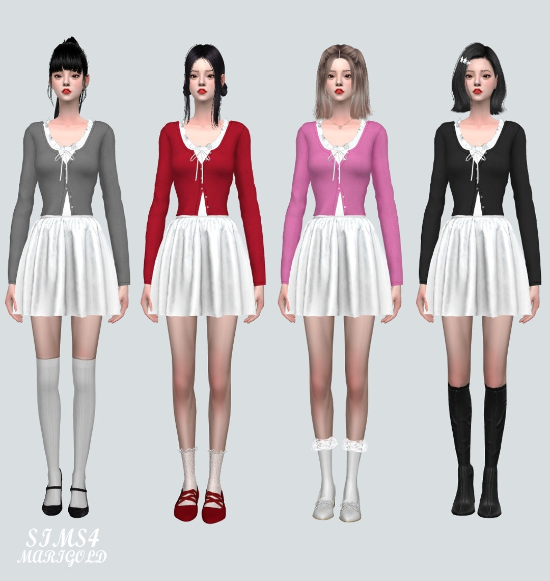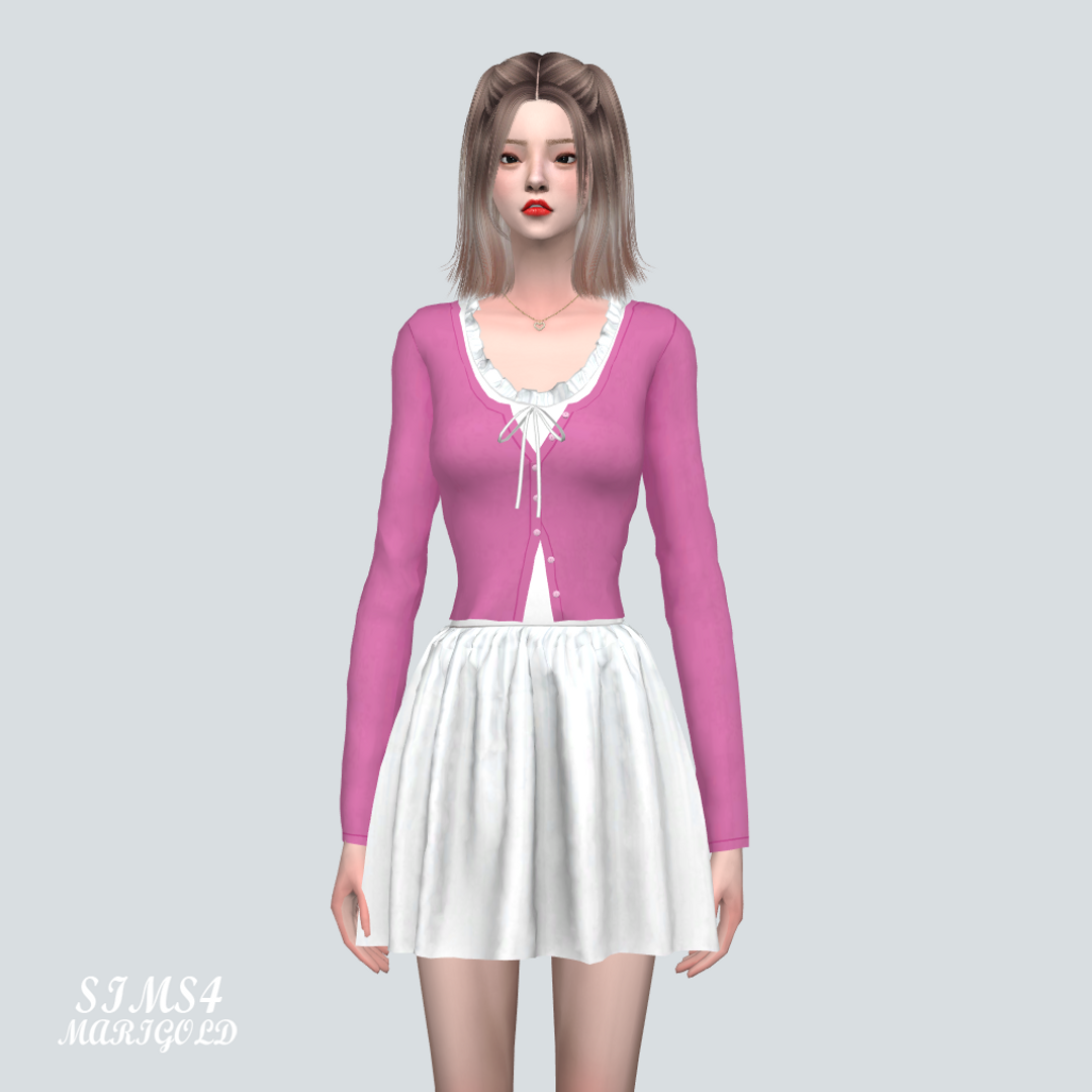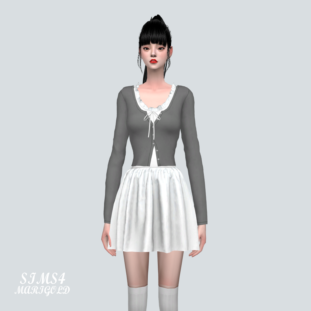 심즈4 프릴 리본 원피스와 가디건이 붙어있습니다.