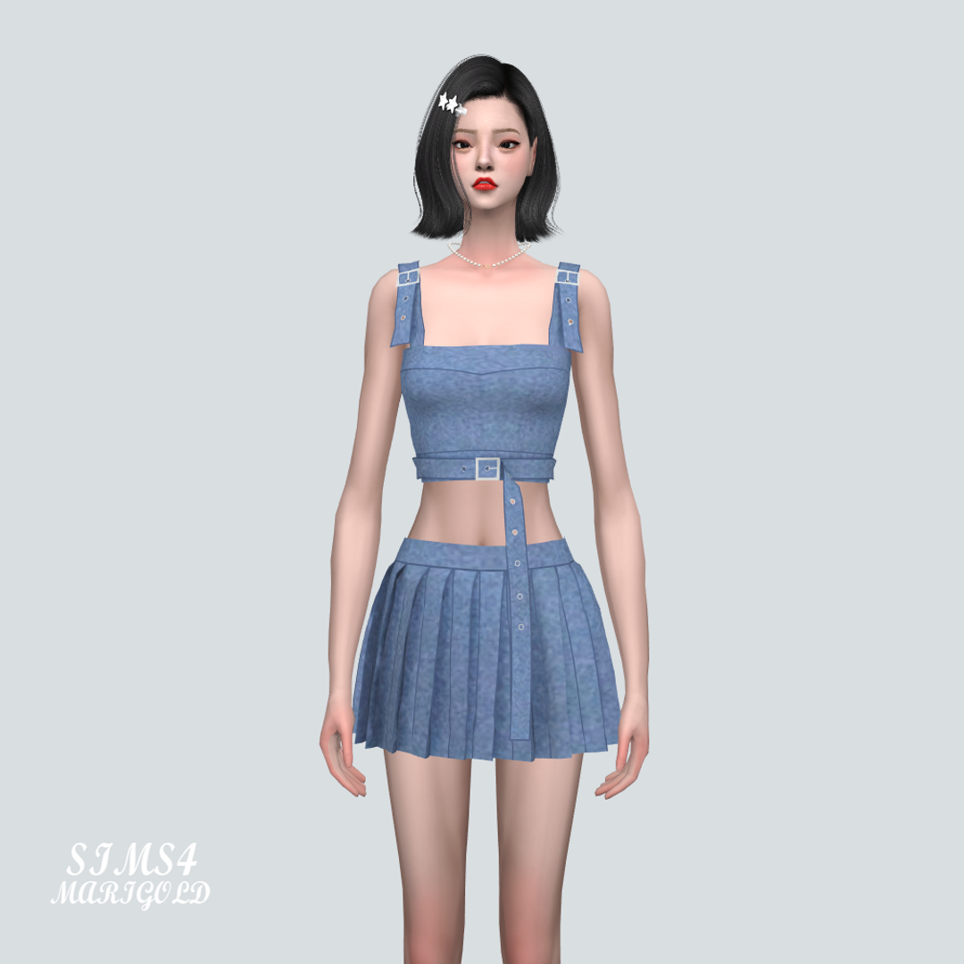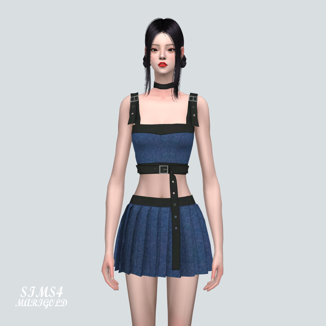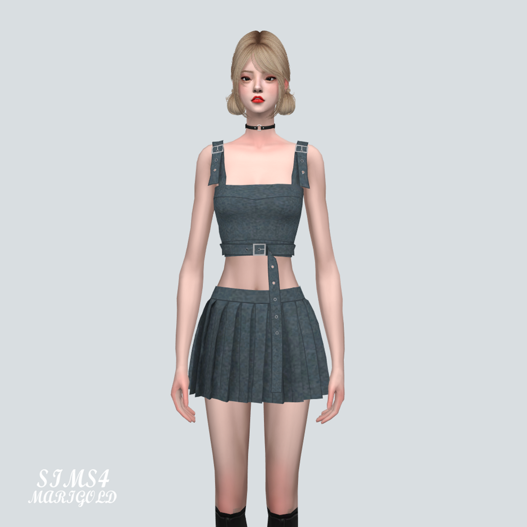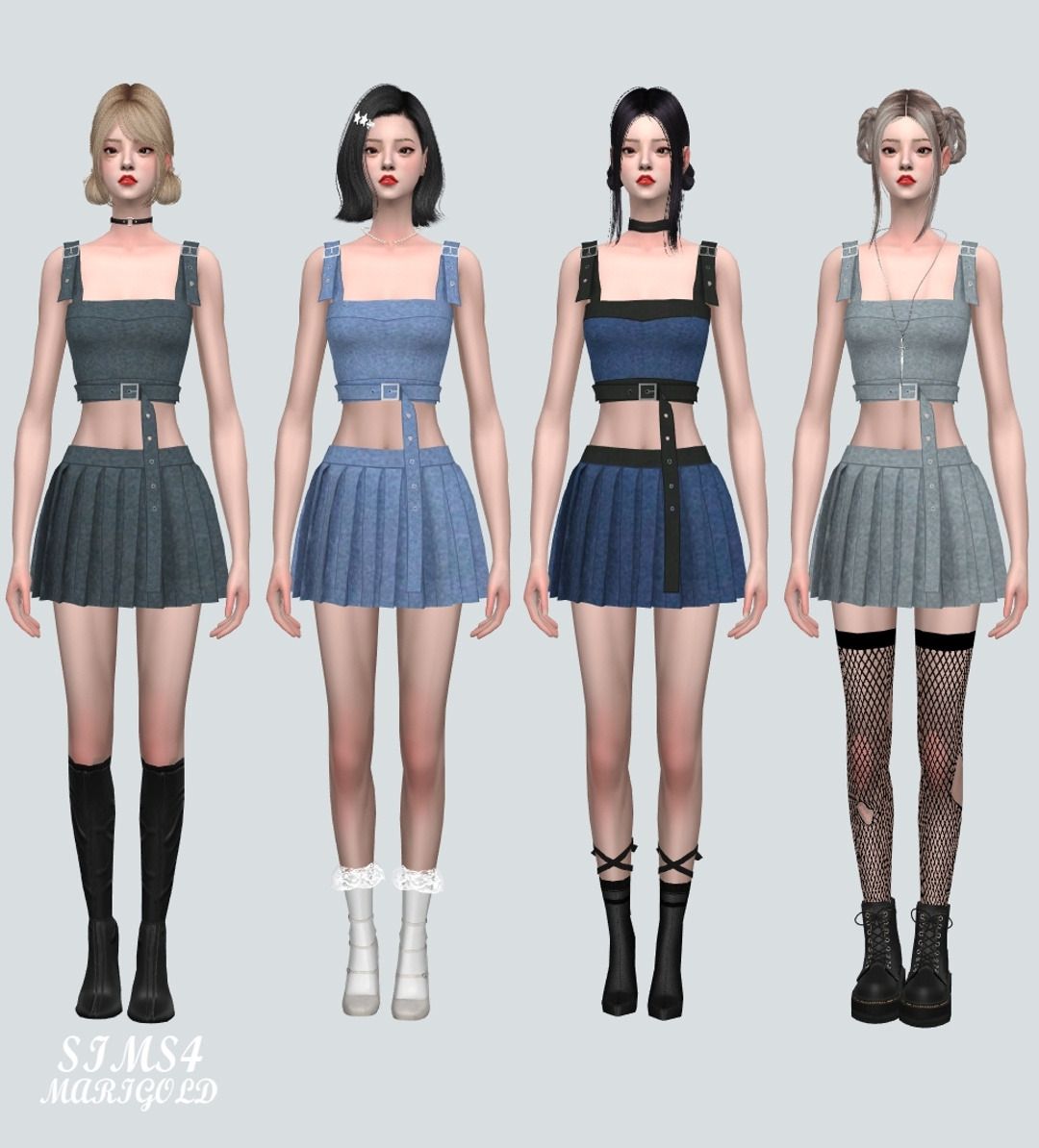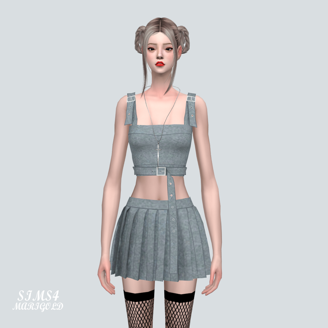심즈4 플리츠 스커트와 벨트 크롭탑이 붙어있습니다.