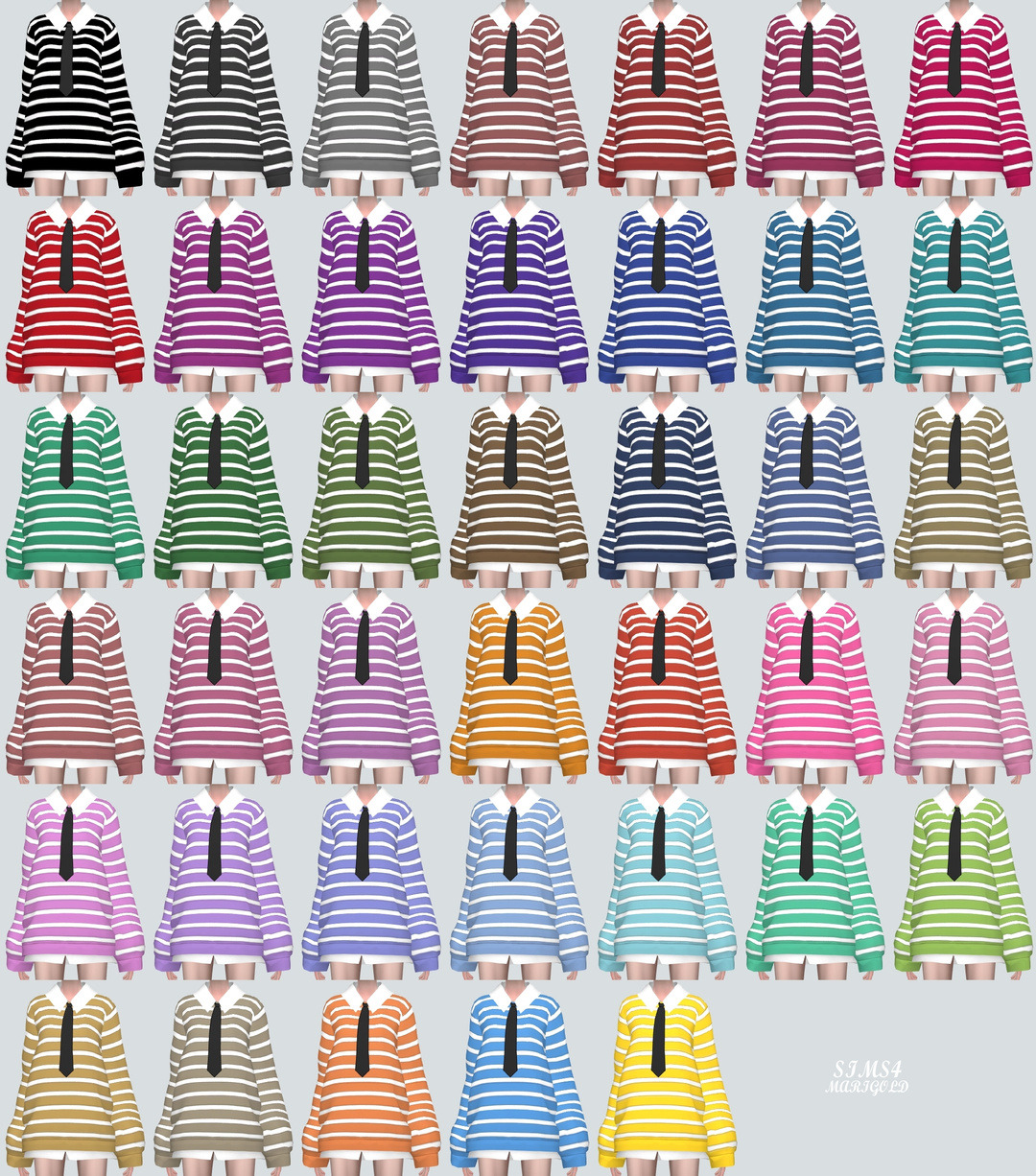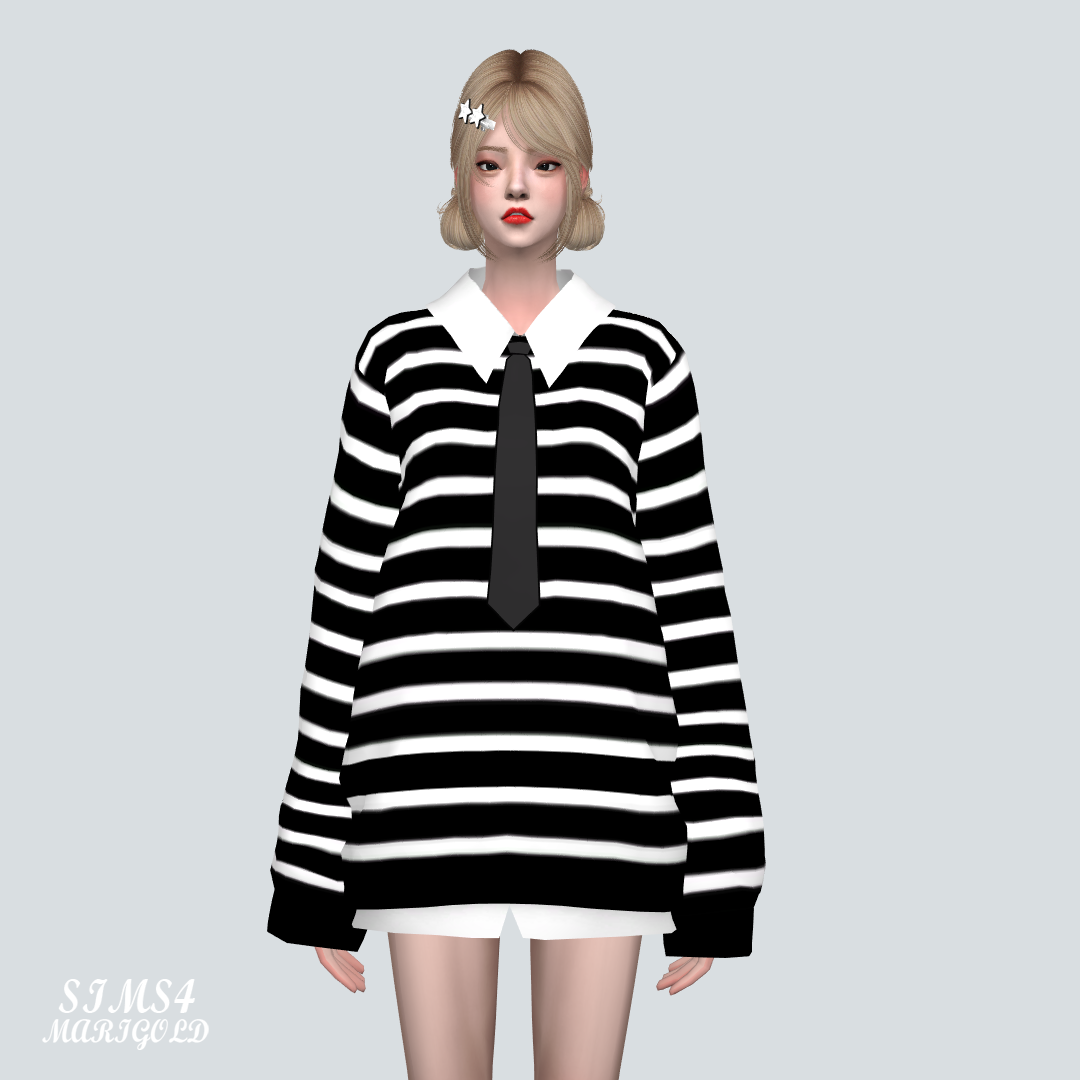 심즈4 줄무늬 스웻셔츠와 셔츠와 넥타이가 붙어있습니다.