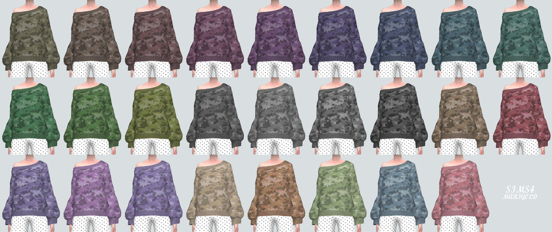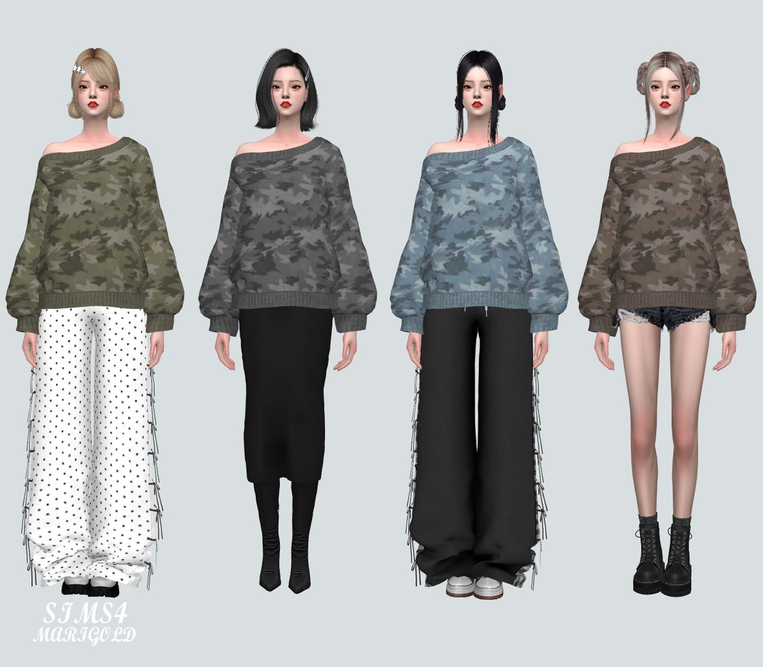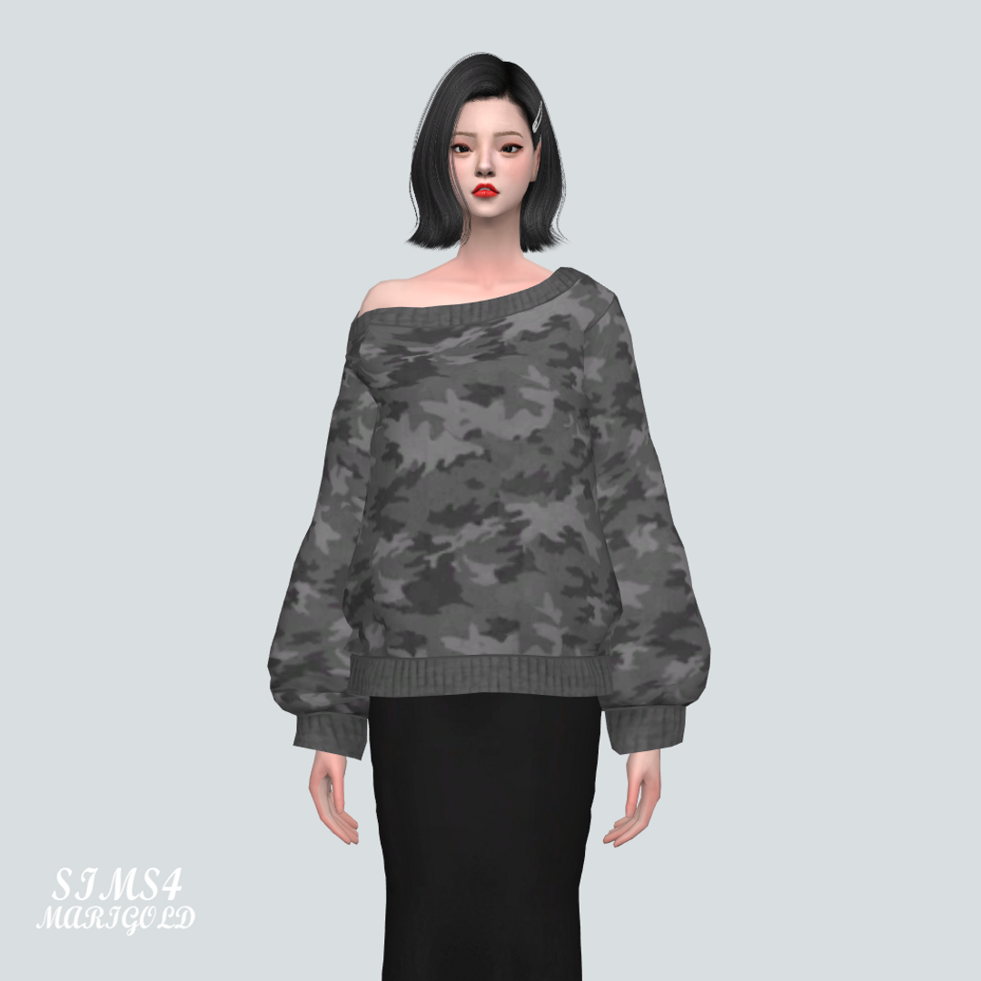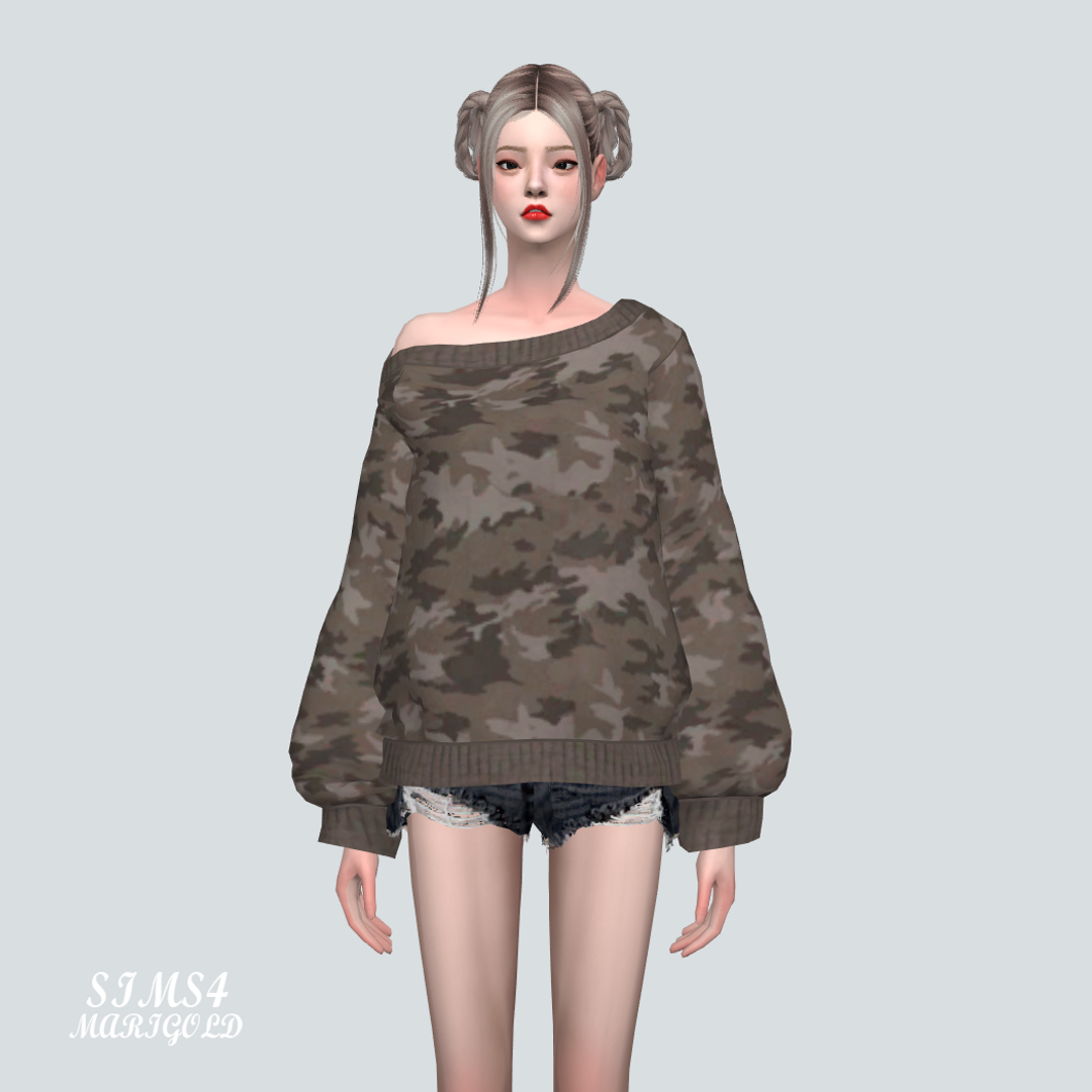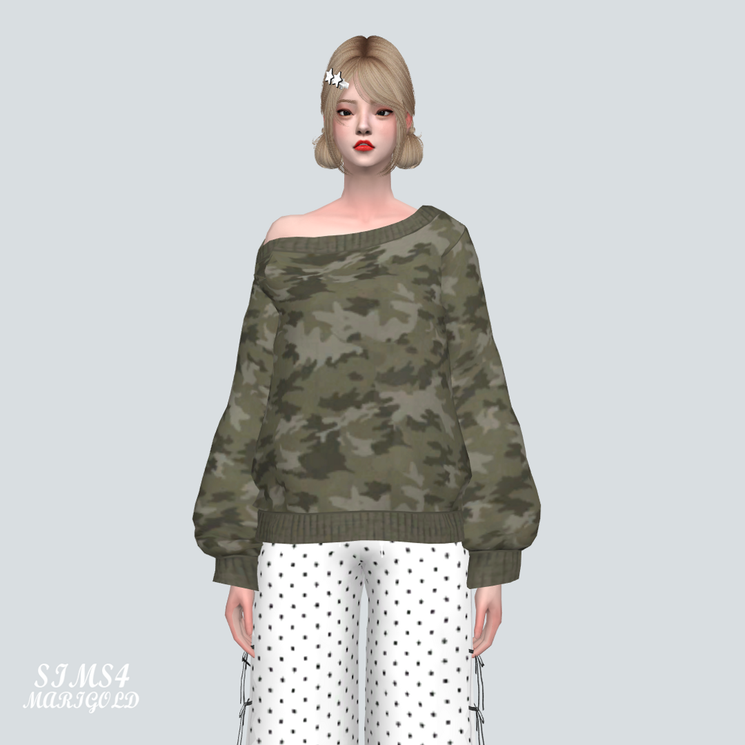 심즈4 밀리터리 패턴 오프숄더 스웻셔츠입니다.