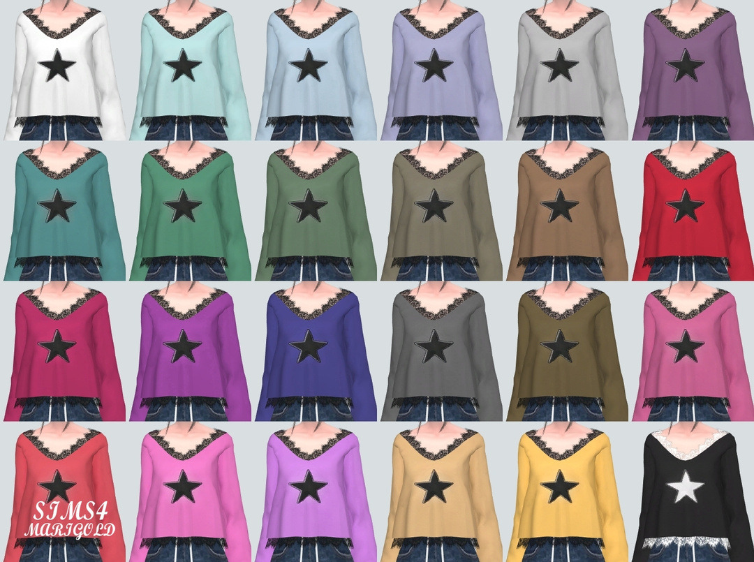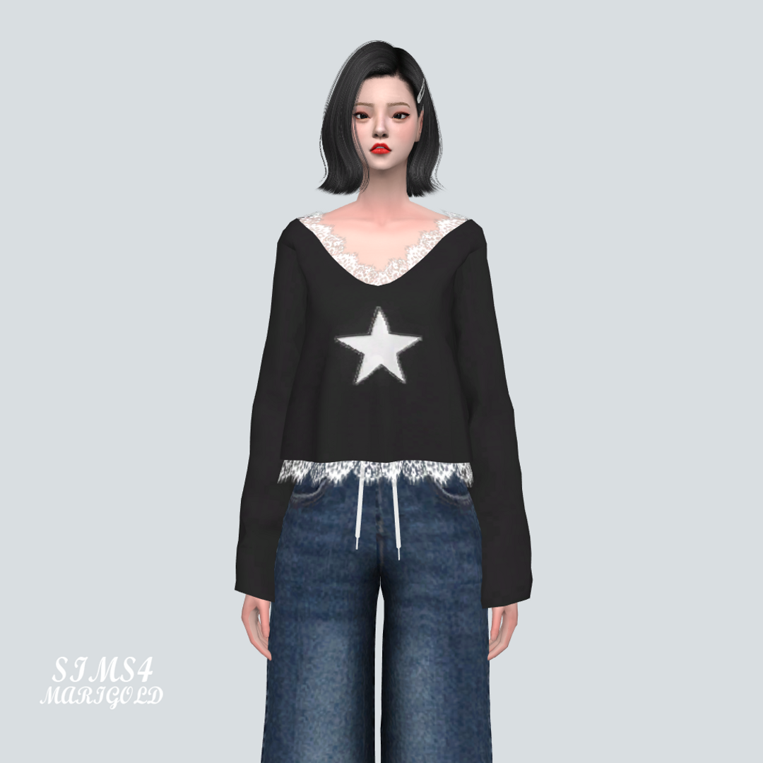 심즈4 레이스 V넥 별 티셔츠입니다.