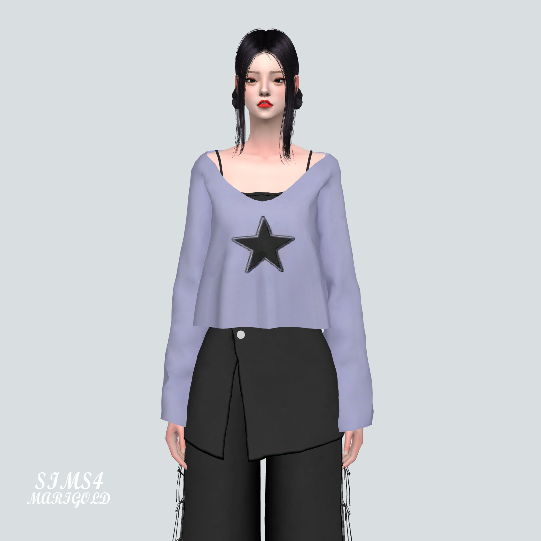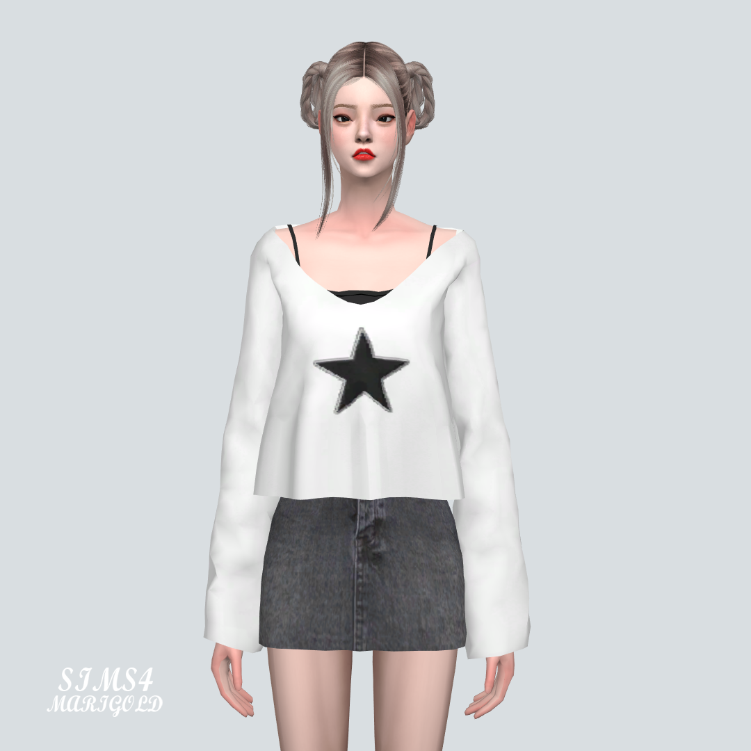 심즈4 v넥 별 티셔츠와 민소매티가 레이어드 되어있습니다.
