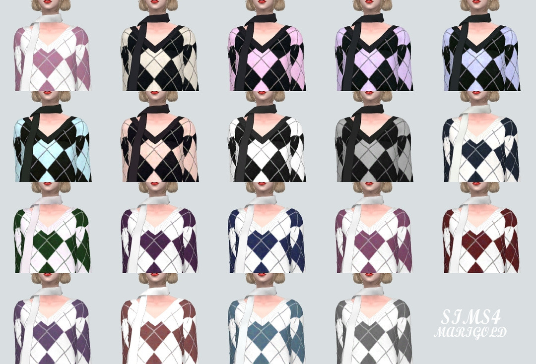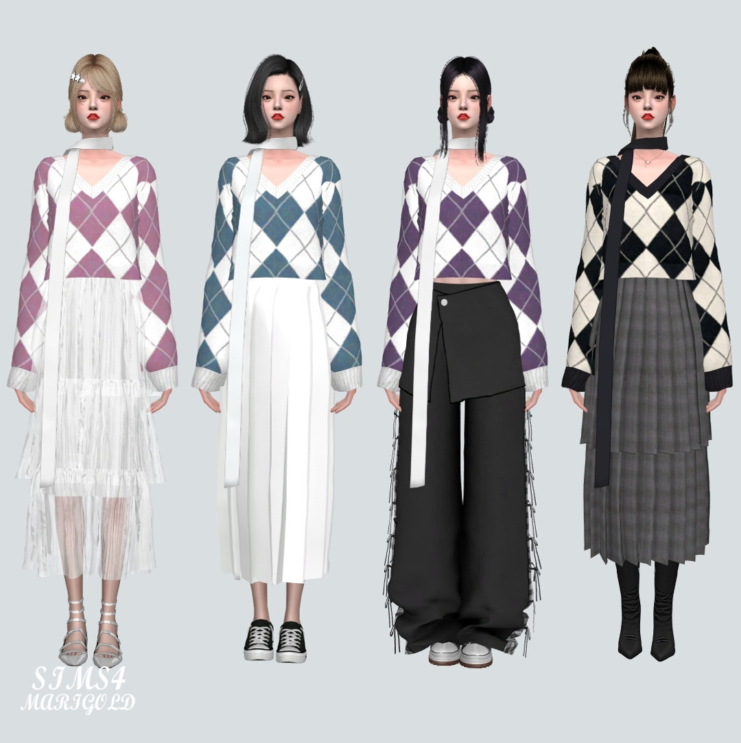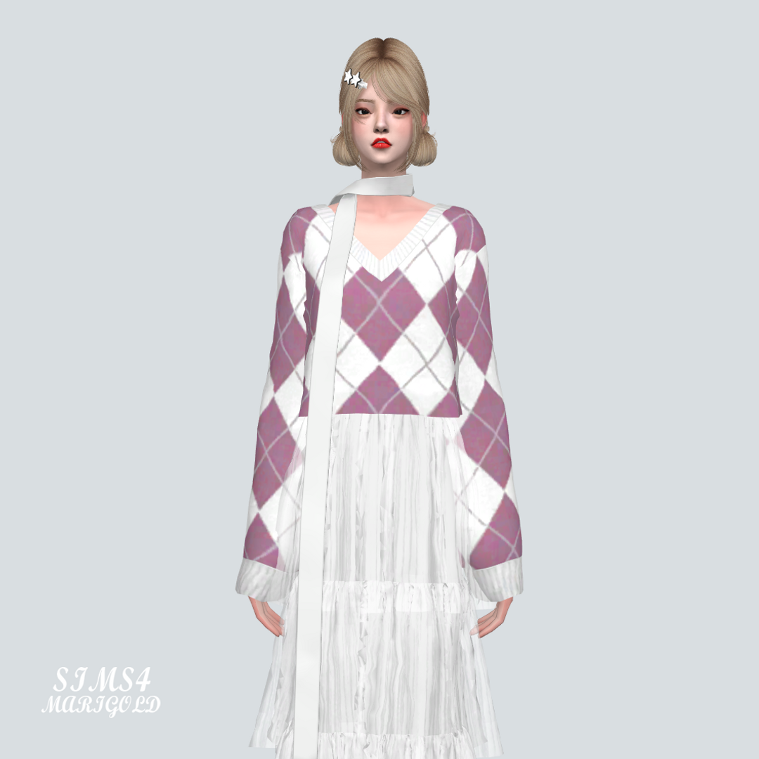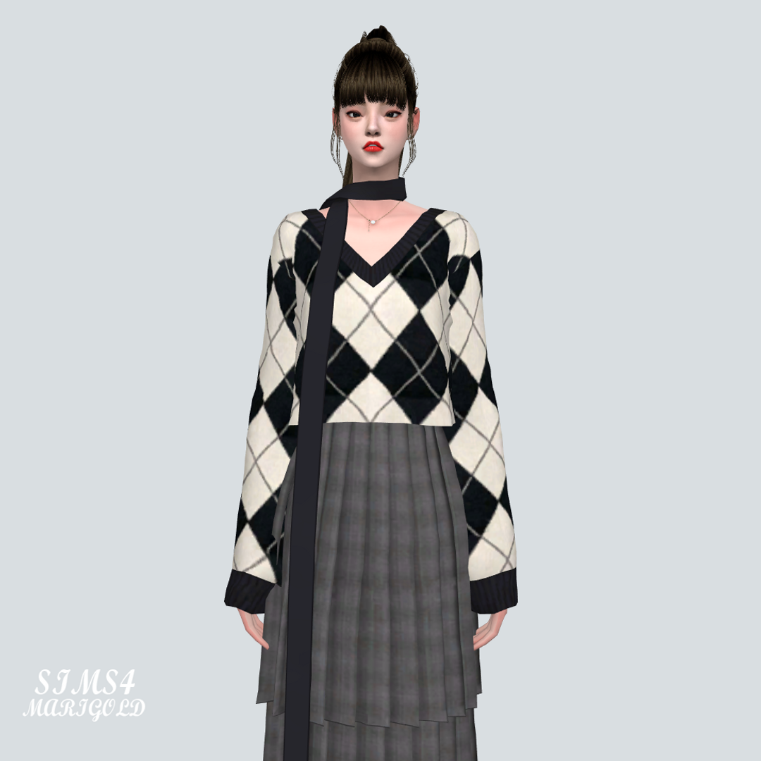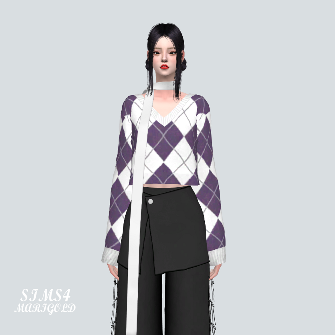 심즈4 아가일 패턴 브이넥 크롭 스웨터입니다.