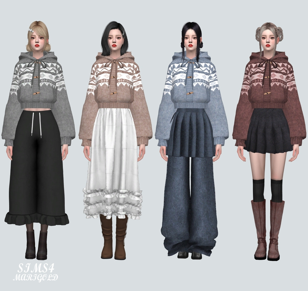 심즈4 후드 니트 스웨터 가디건입니다.