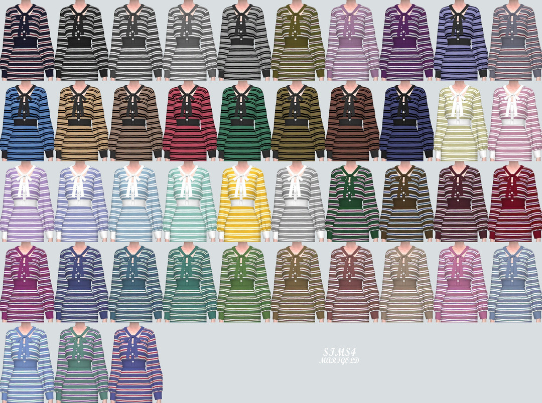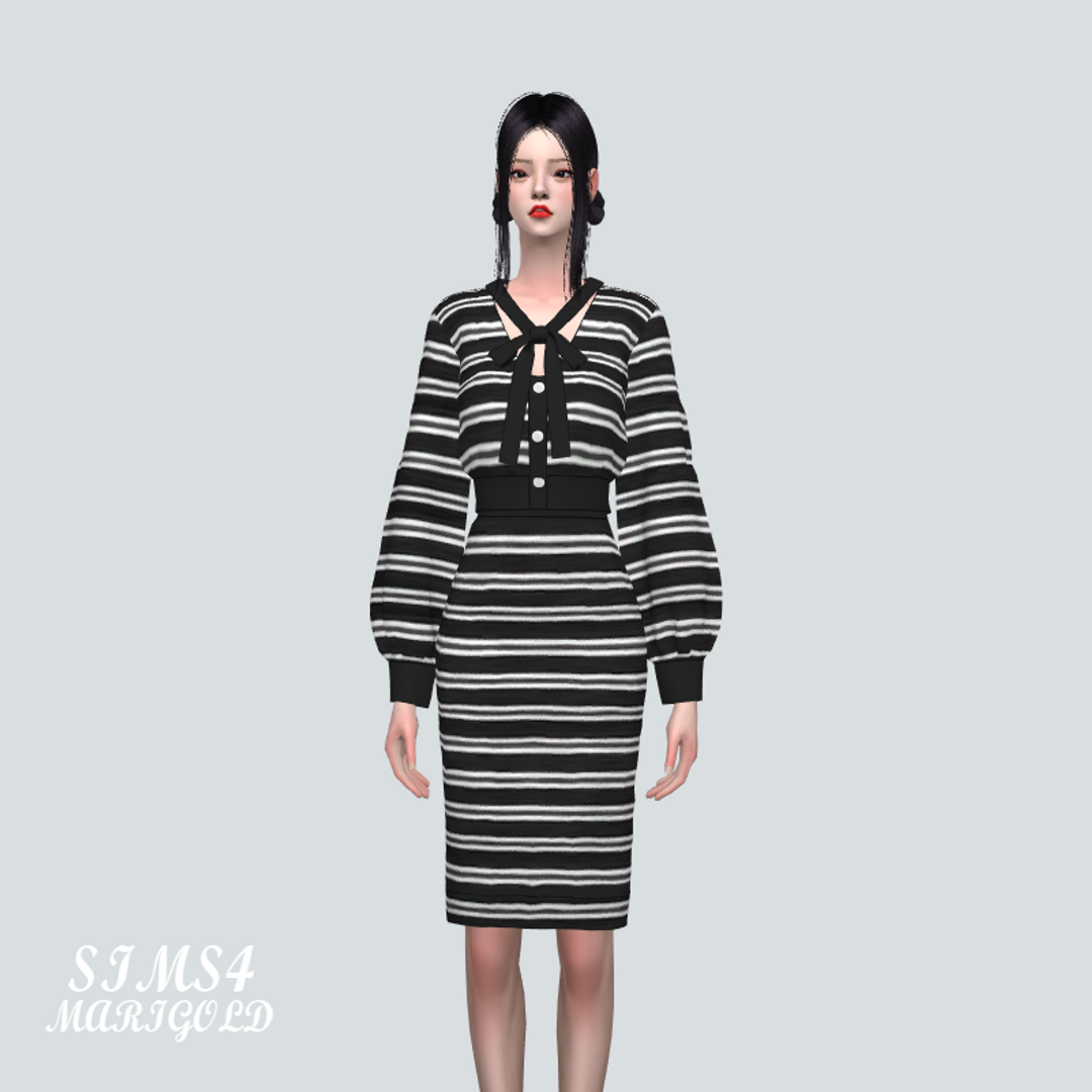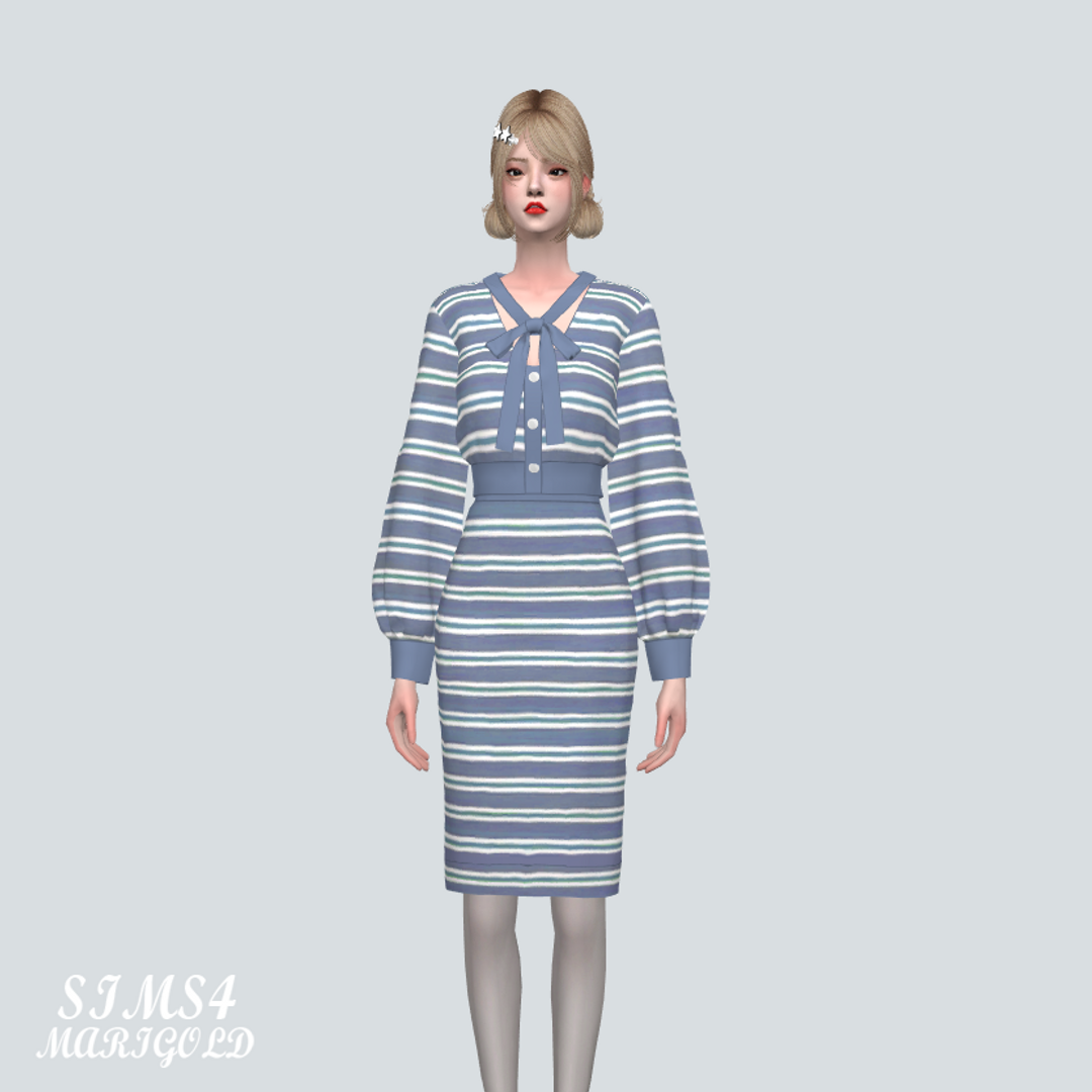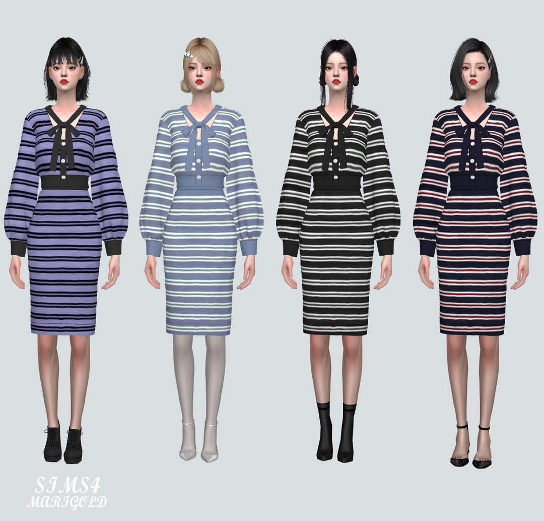 심즈4 리본이 달린 줄무늬 가디건과 미디 스커트가 붙어있습니다.