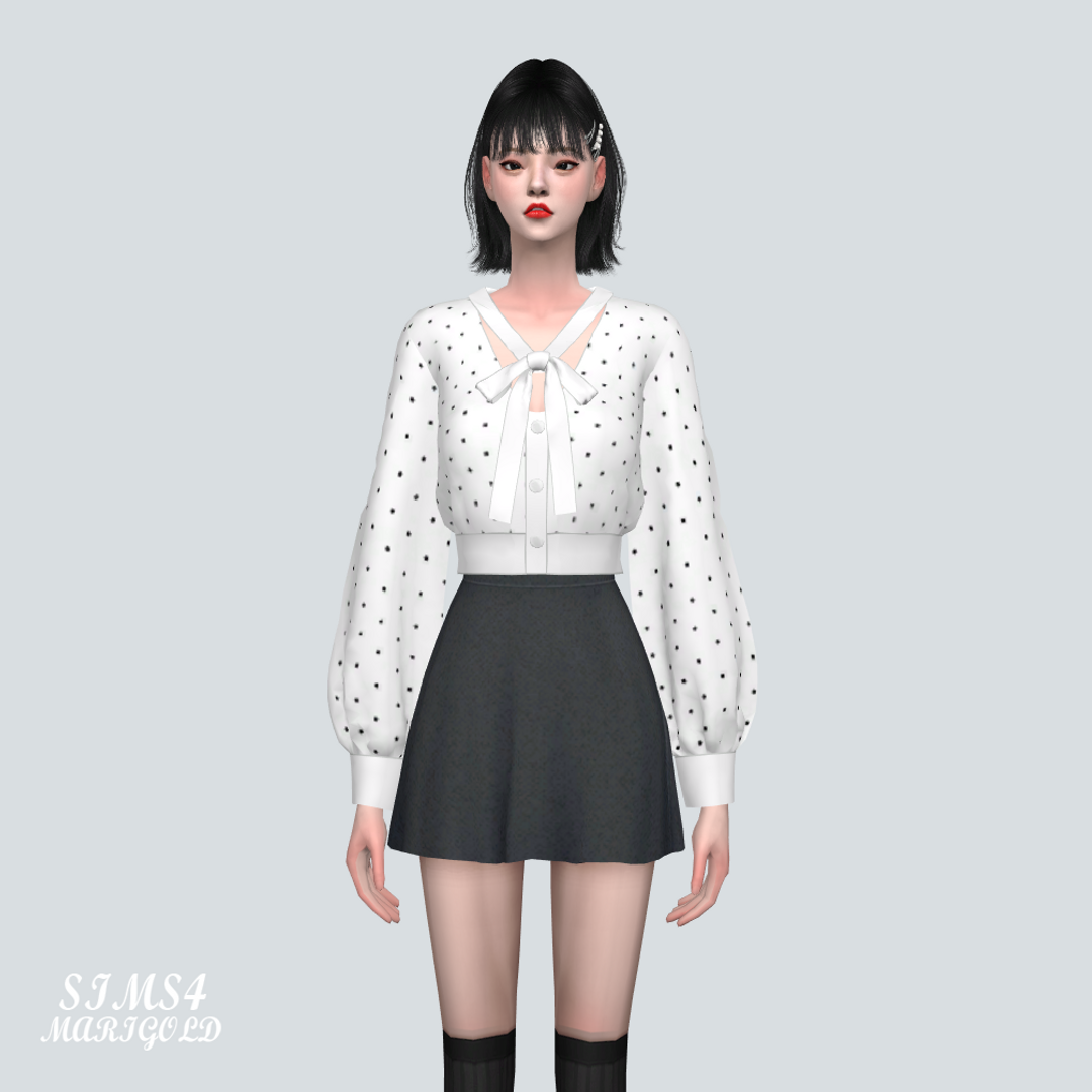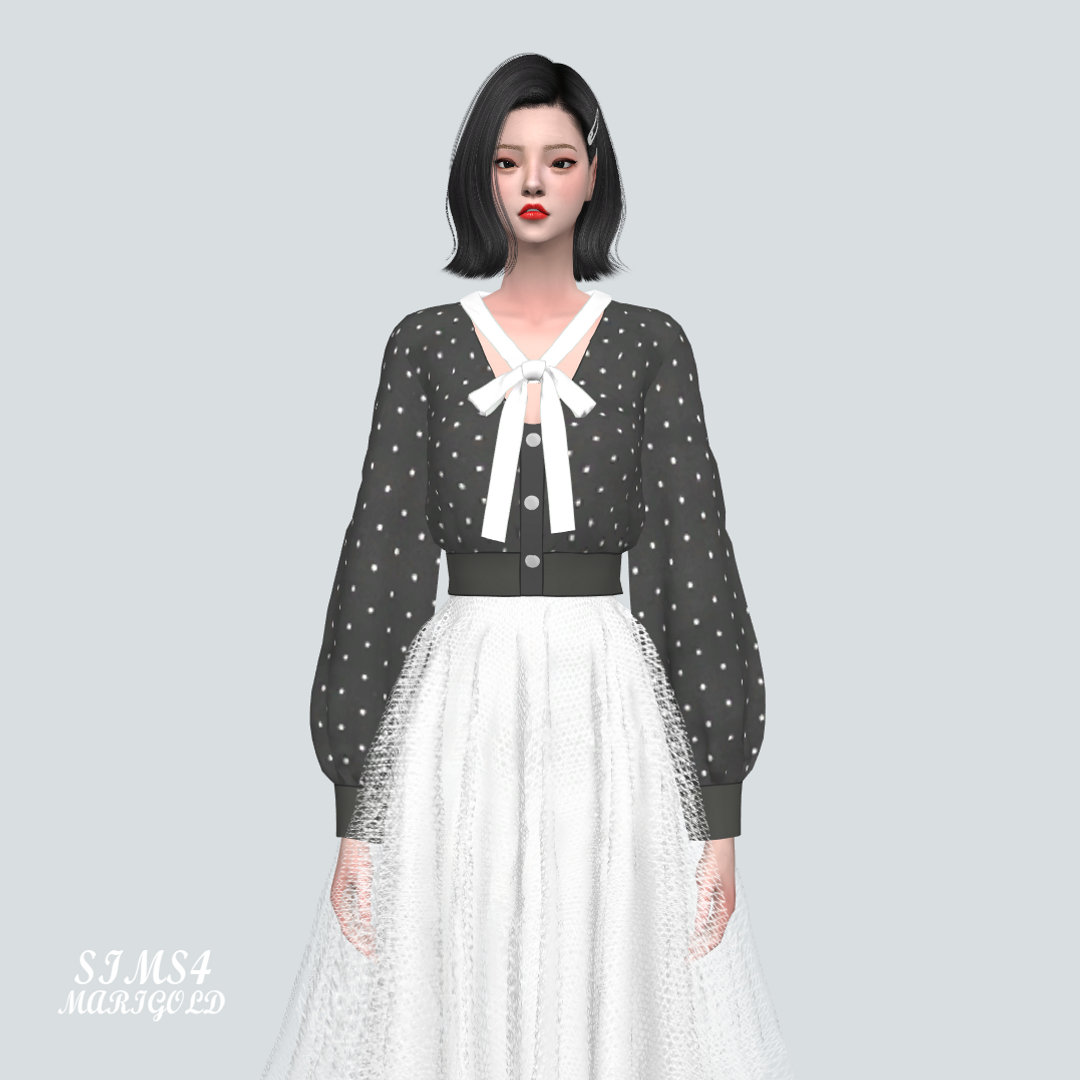 심즈4 리본이 달린 도트무늬 가디건입니다.