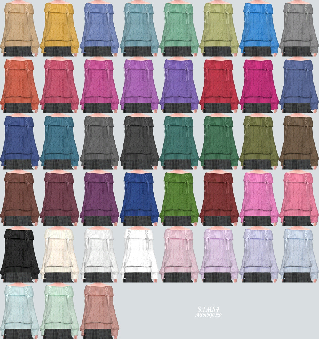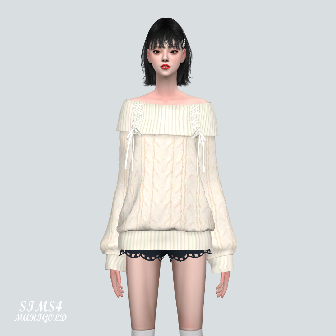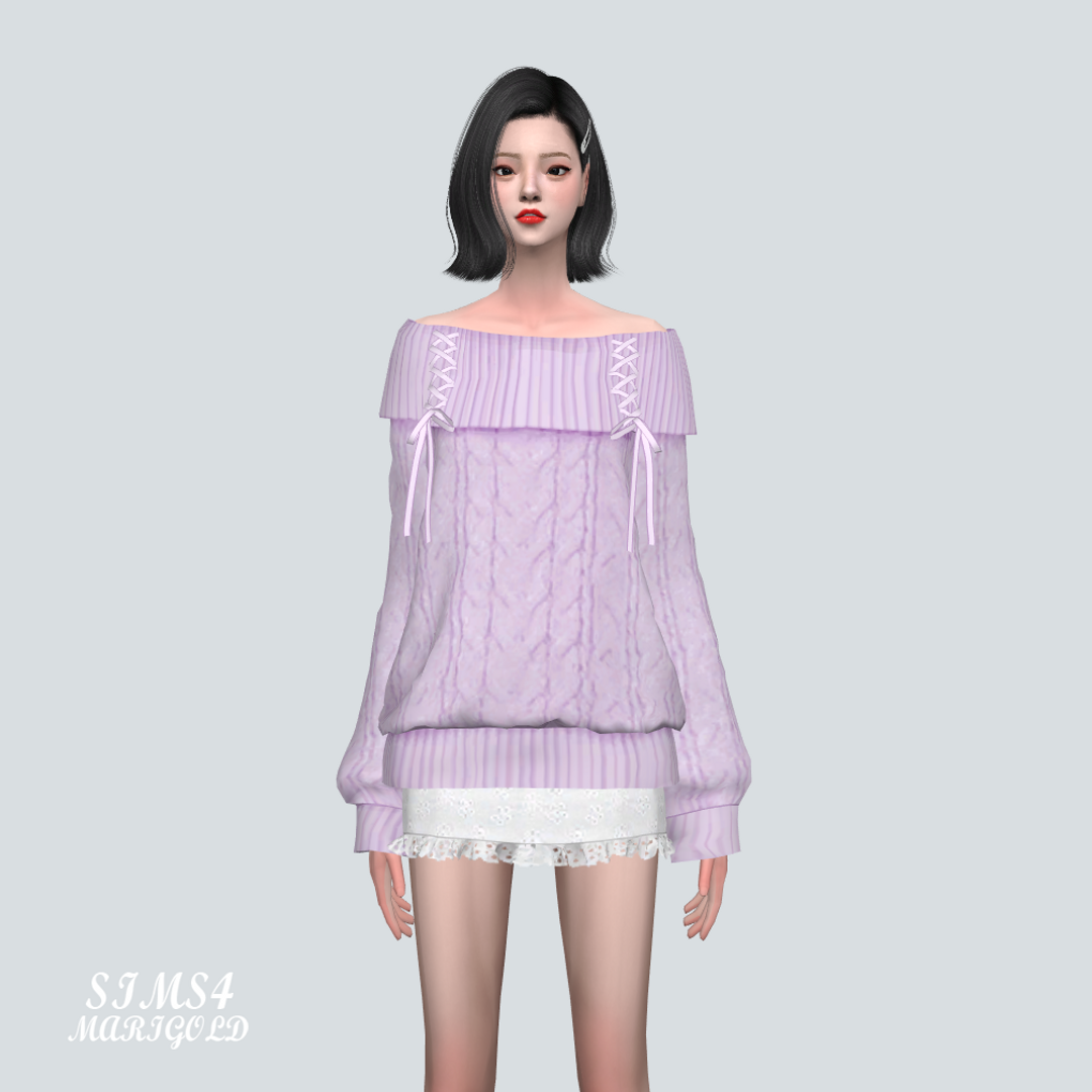 심즈4 리본 장식이 달린 오프숄더 롱 스웨터입니다.