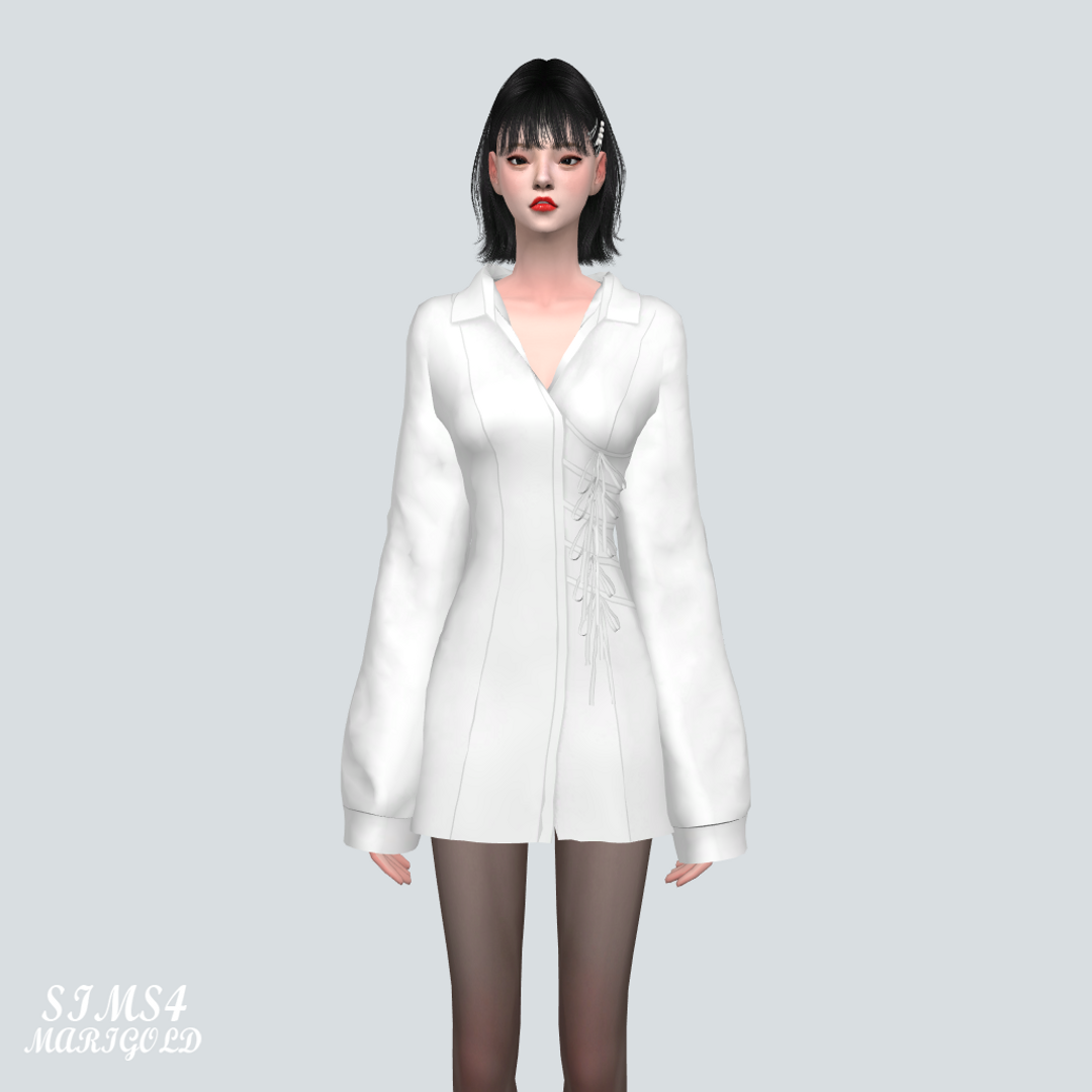 심즈4 리본 장식이 달린 셔츠 미니 원피스입니다.