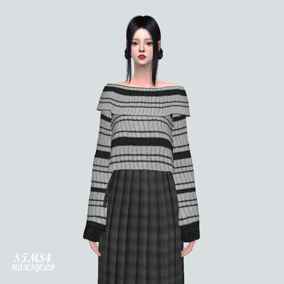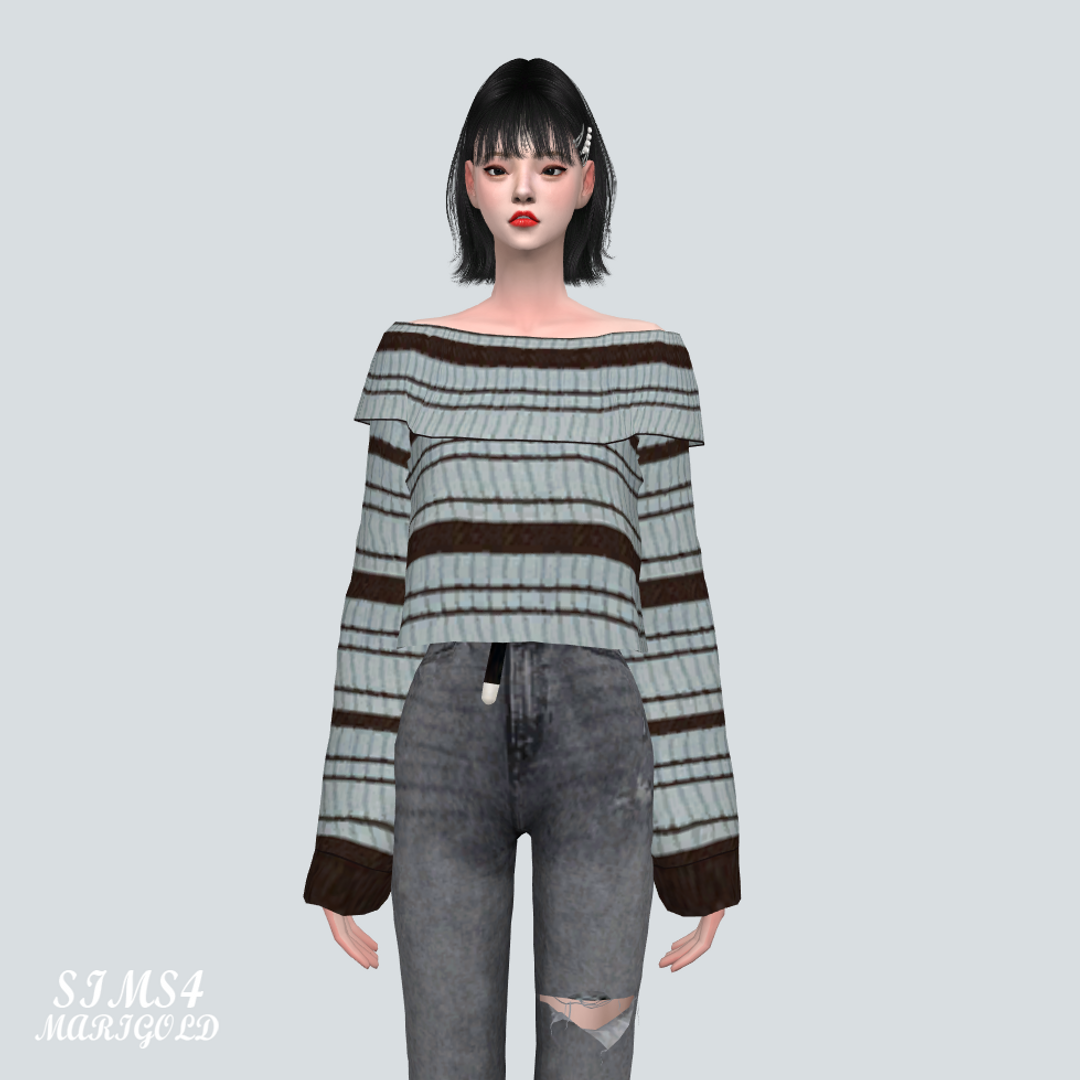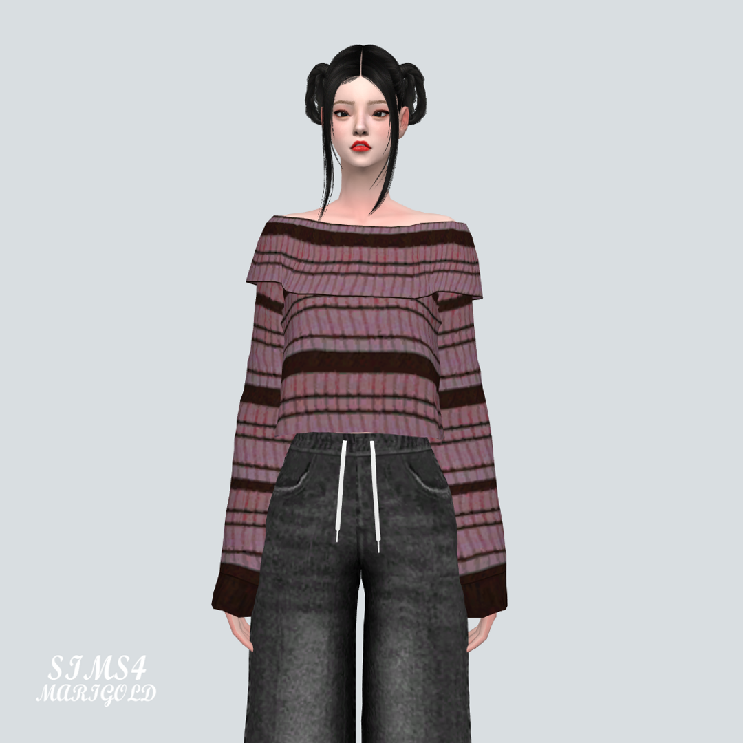 심즈4 오프숄더 줄무늬 스웨터입니다.