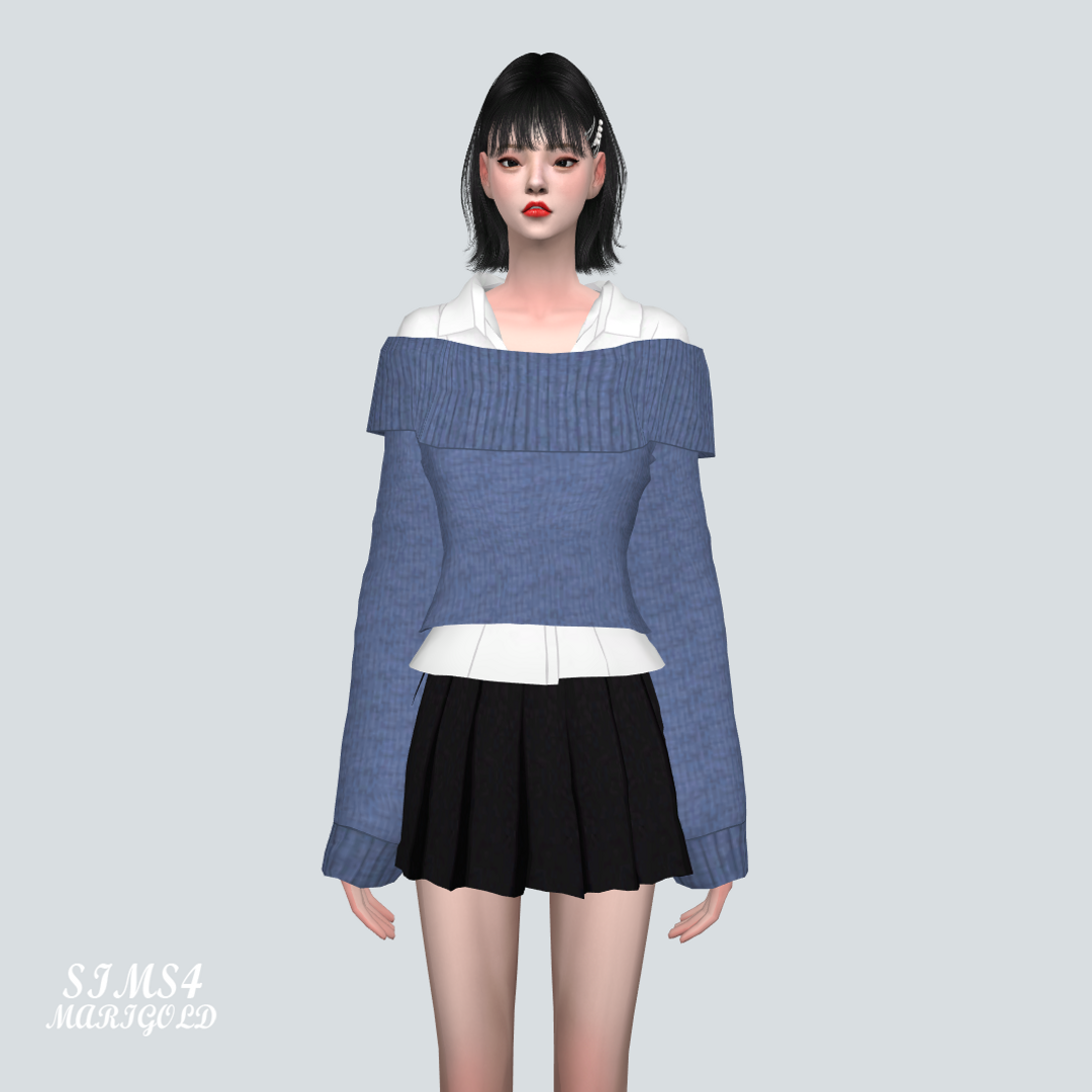 [Sims4 CC] S80 Off-Shoulder Sweater With Shirts V2_S80 오프숄더 스웨터와 셔츠 V2_여자 의상