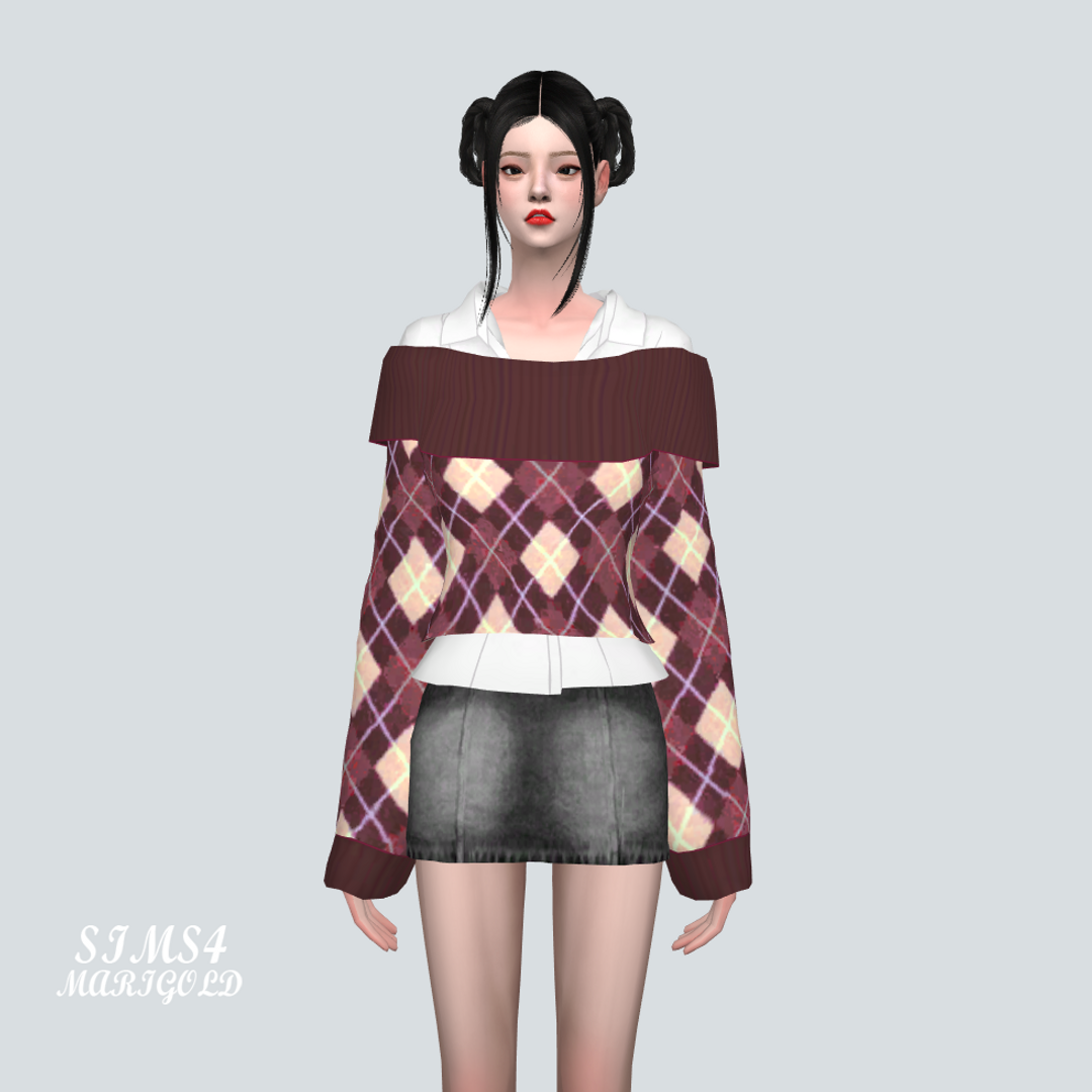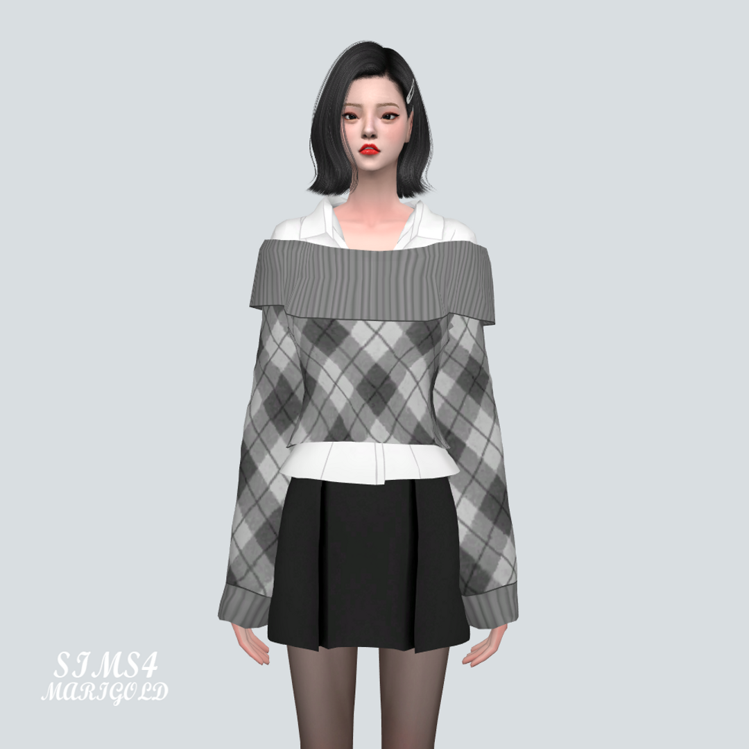 [Sims4 CC] S90 Off-Shoulder Sweater With Shirts V2_S90 오프숄더 스웨터와 셔츠 V2_여자 의상