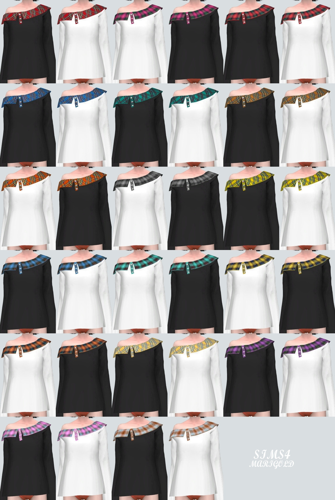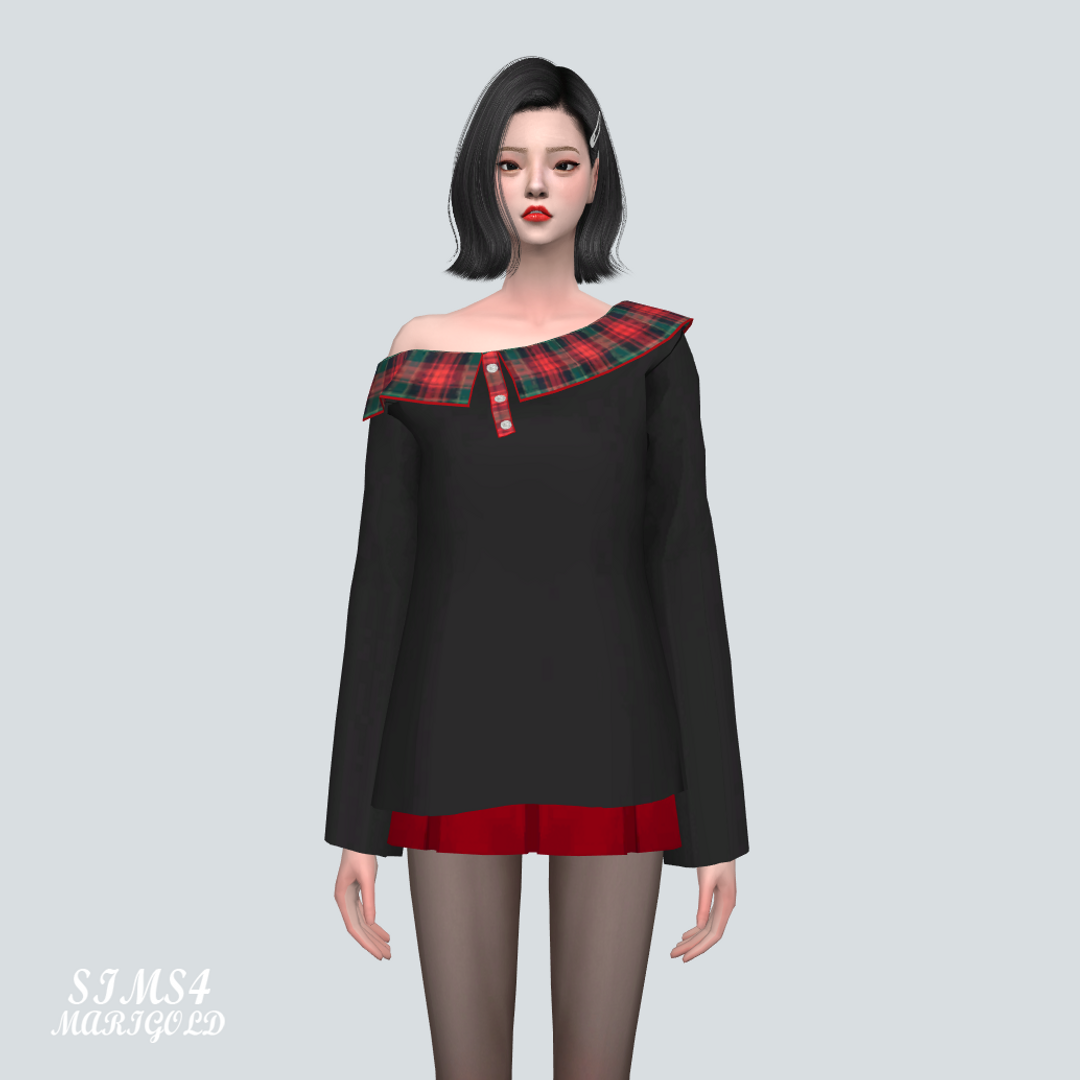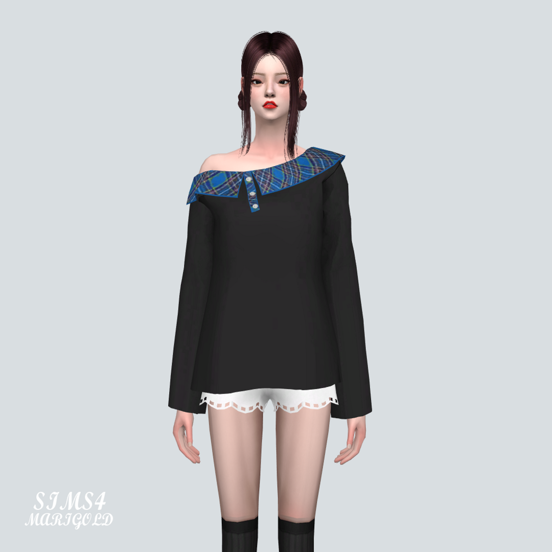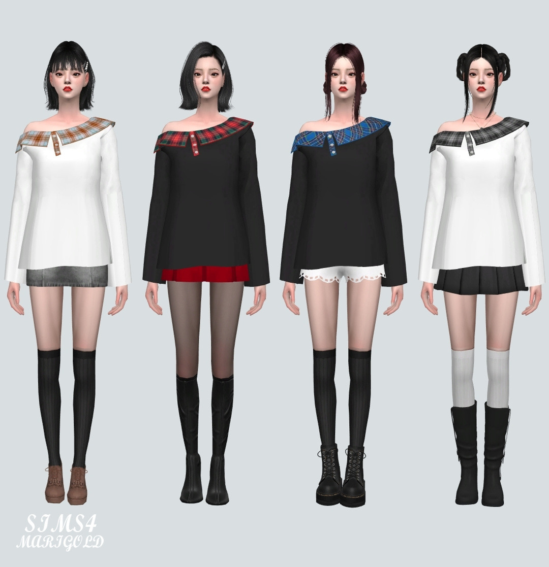 심즈4 체크무늬 카라가 달린 오프숄더 티입니다.