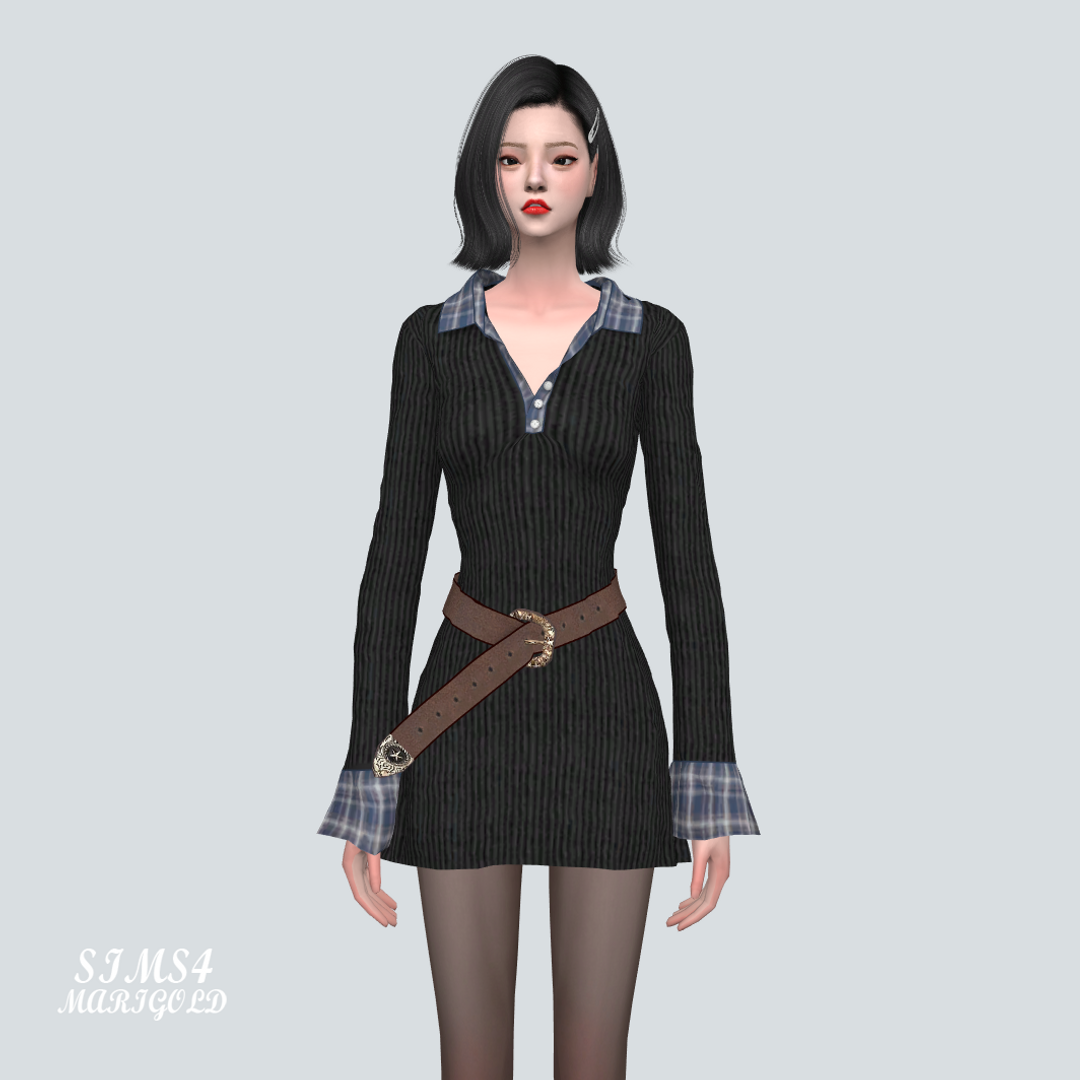 [Sims4 CC] 620 Shirts Mini Dress With Big Belt V2_620 셔츠 미니 드레스와 빅 벨트 V2_여자 의상