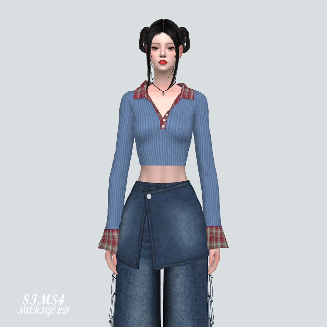 심즈4 카라가 달린 골지 크롭탑입니다.