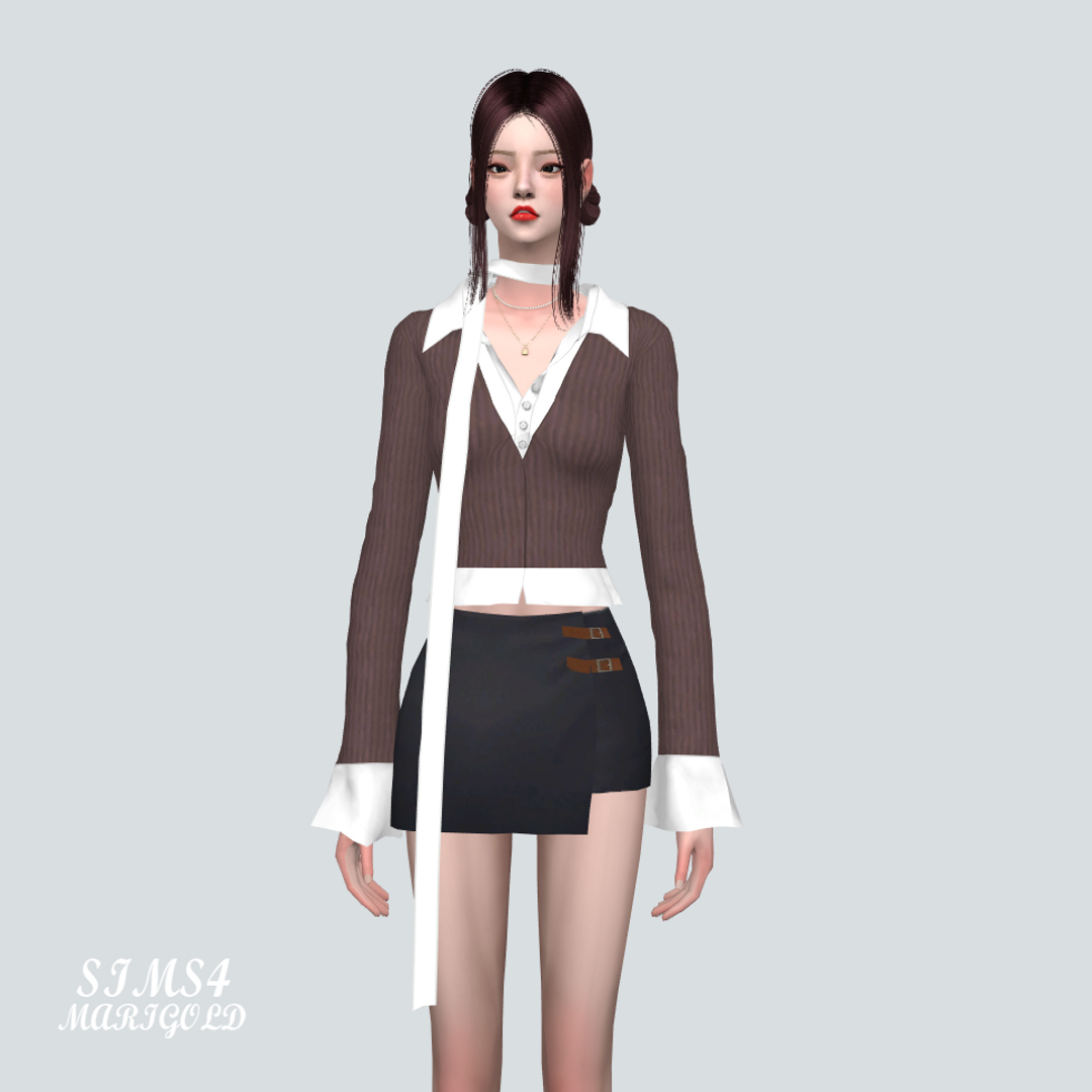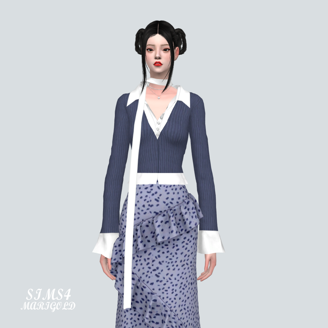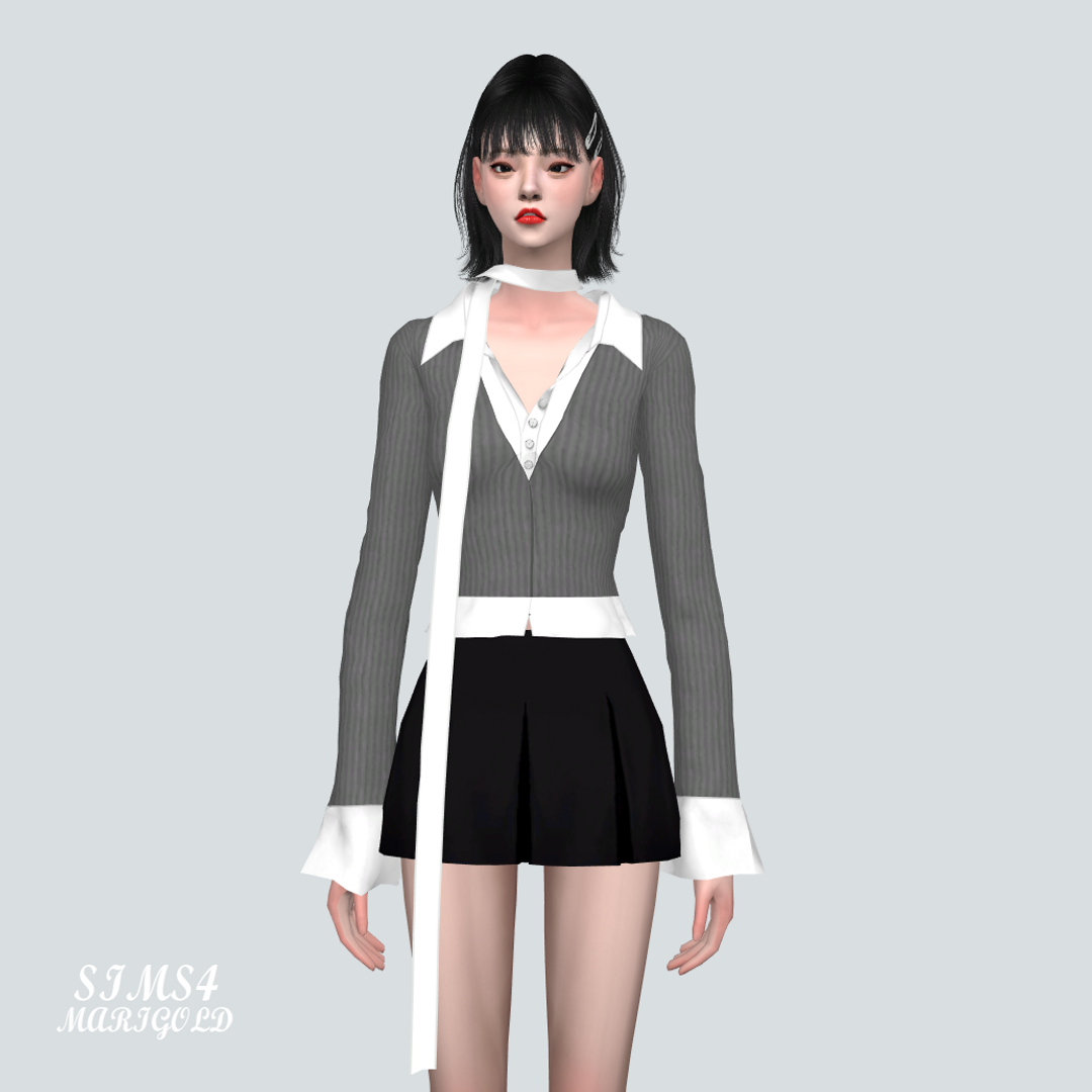 심즈4 셔츠와 가디건과 목 스카프가 붙어있습니다.