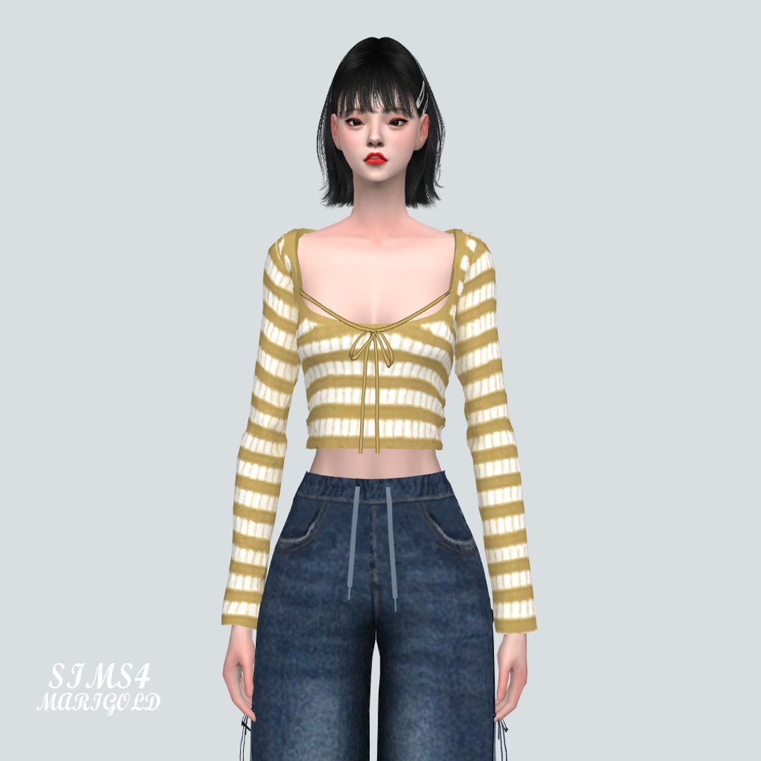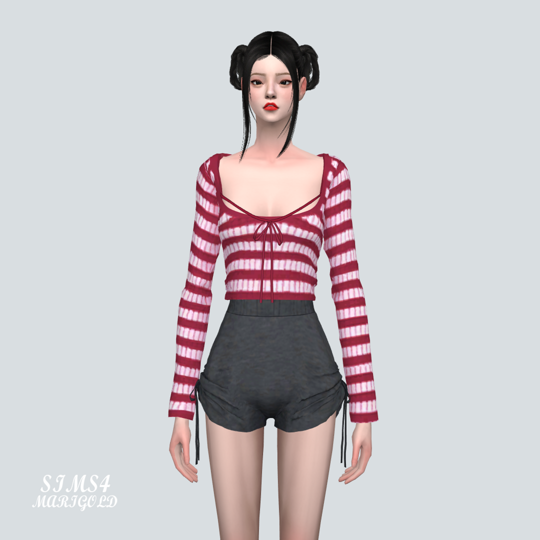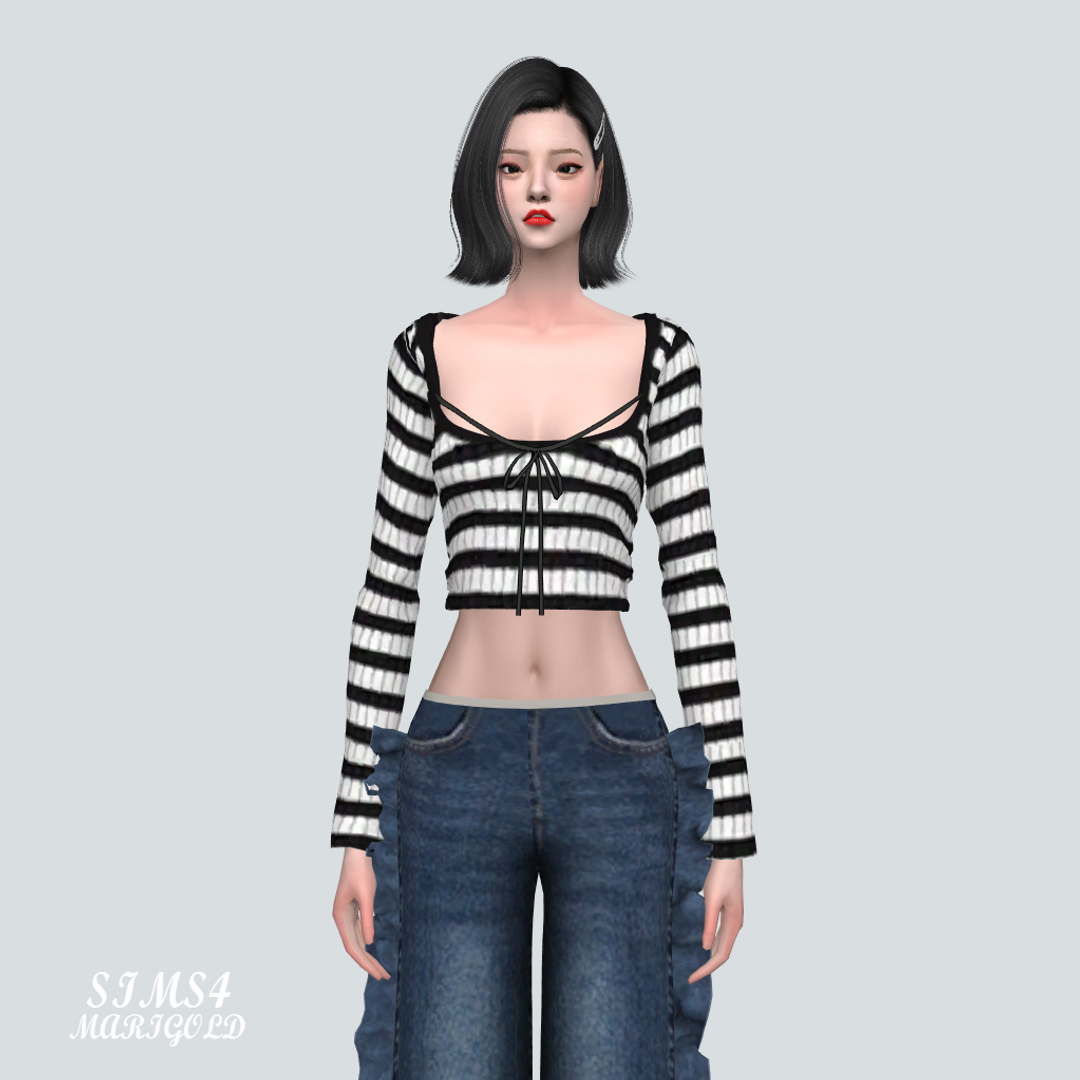 심즈4 줄무늬 긴소매 리본 탑입니다.