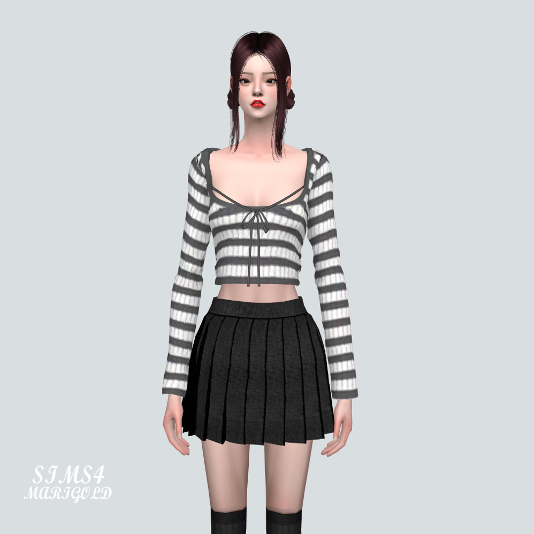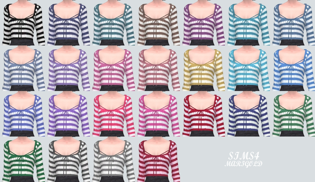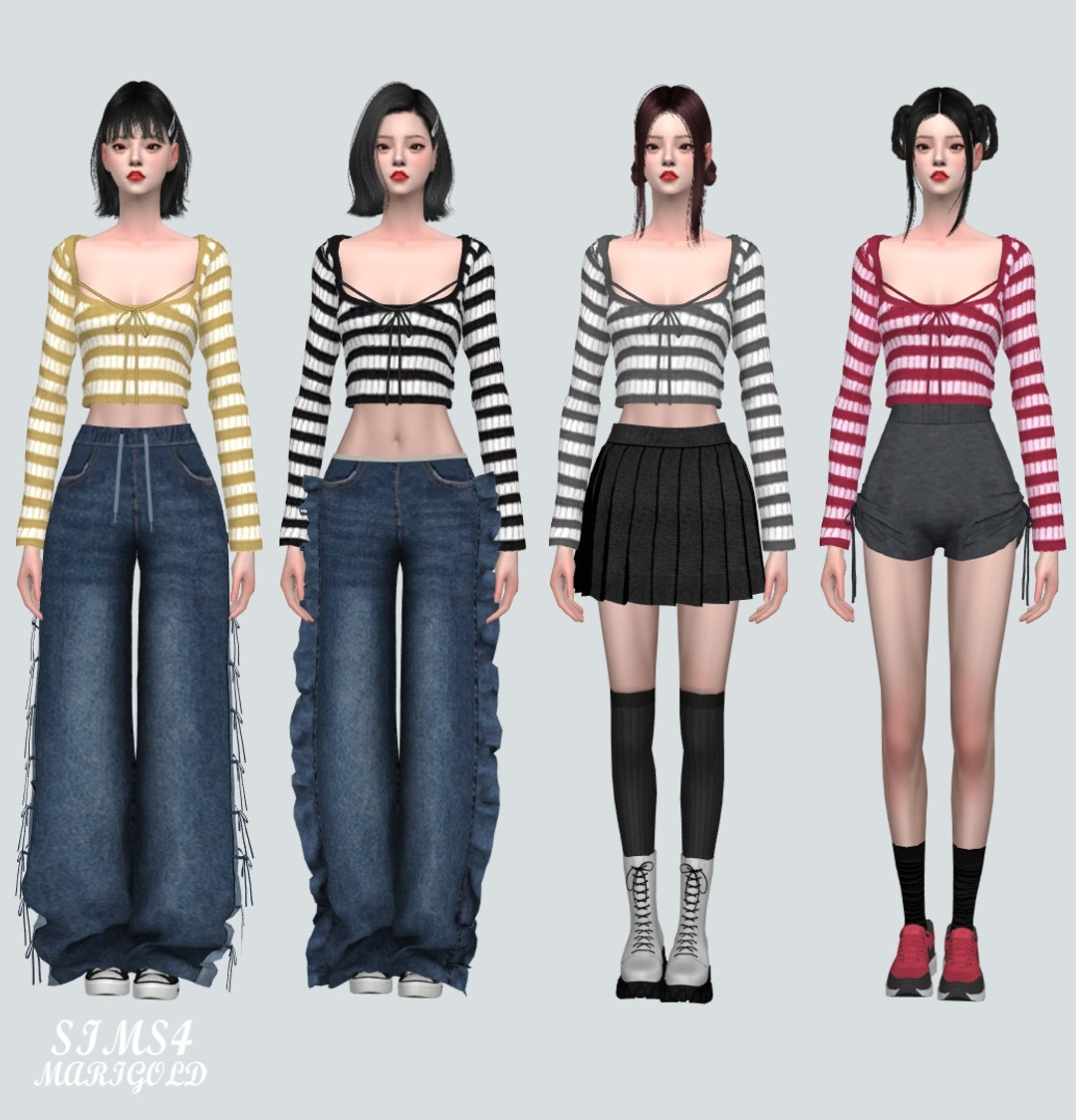 심즈4 줄무늬 긴소매 리본 탑입니다.
