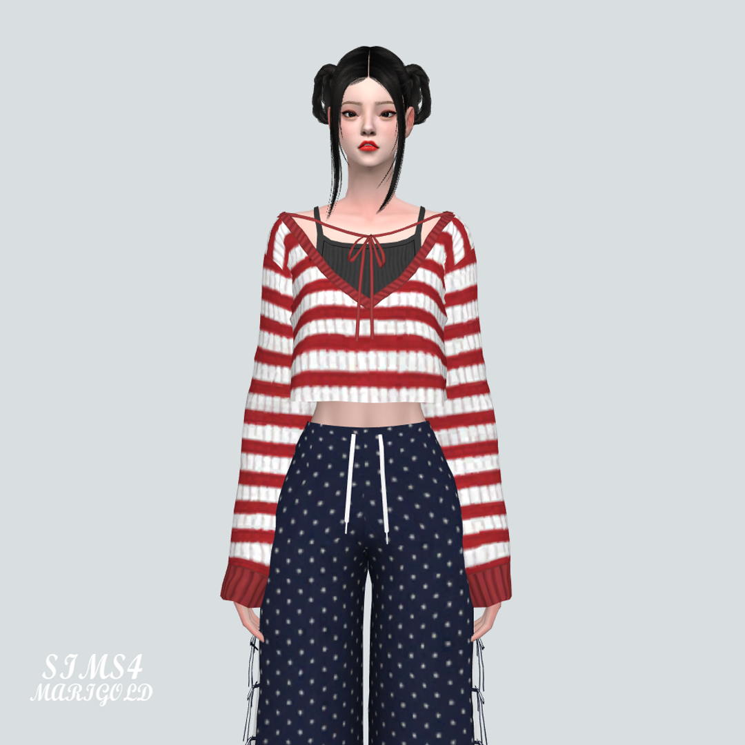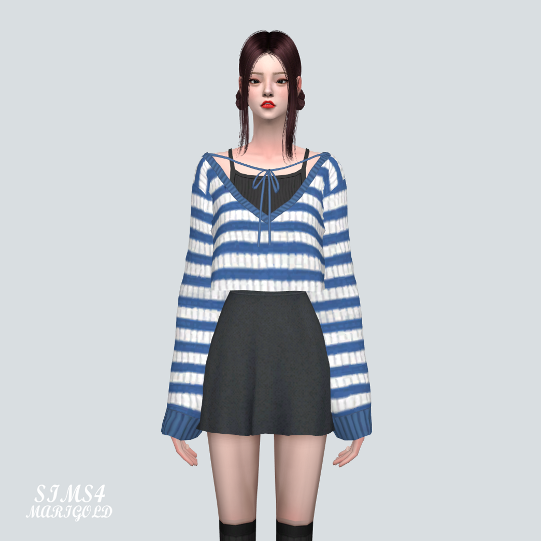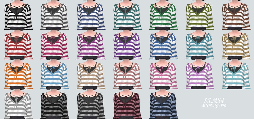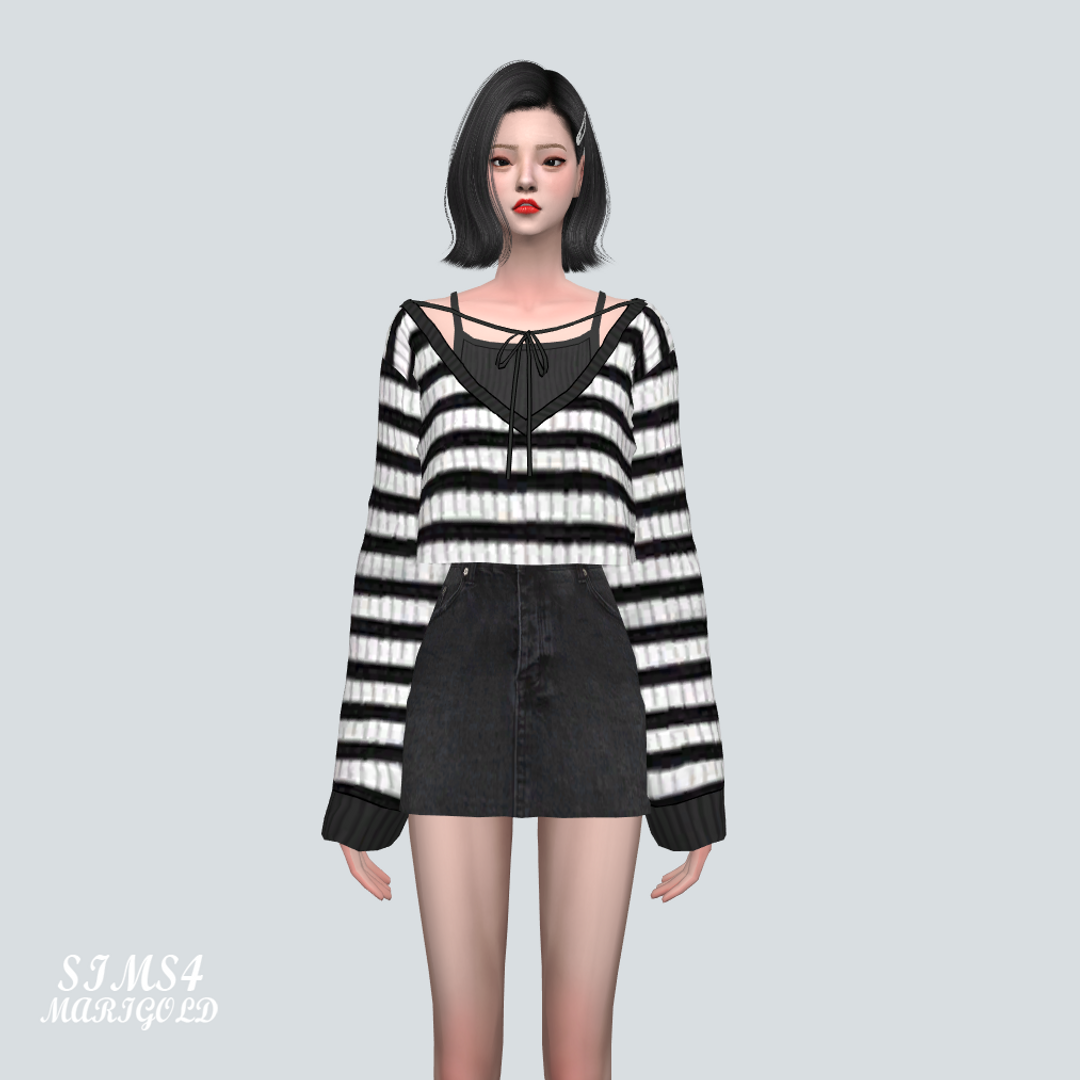 심즈4 크롭 줄무늬 스웨터와 민소매 티가 붙어있습니다.