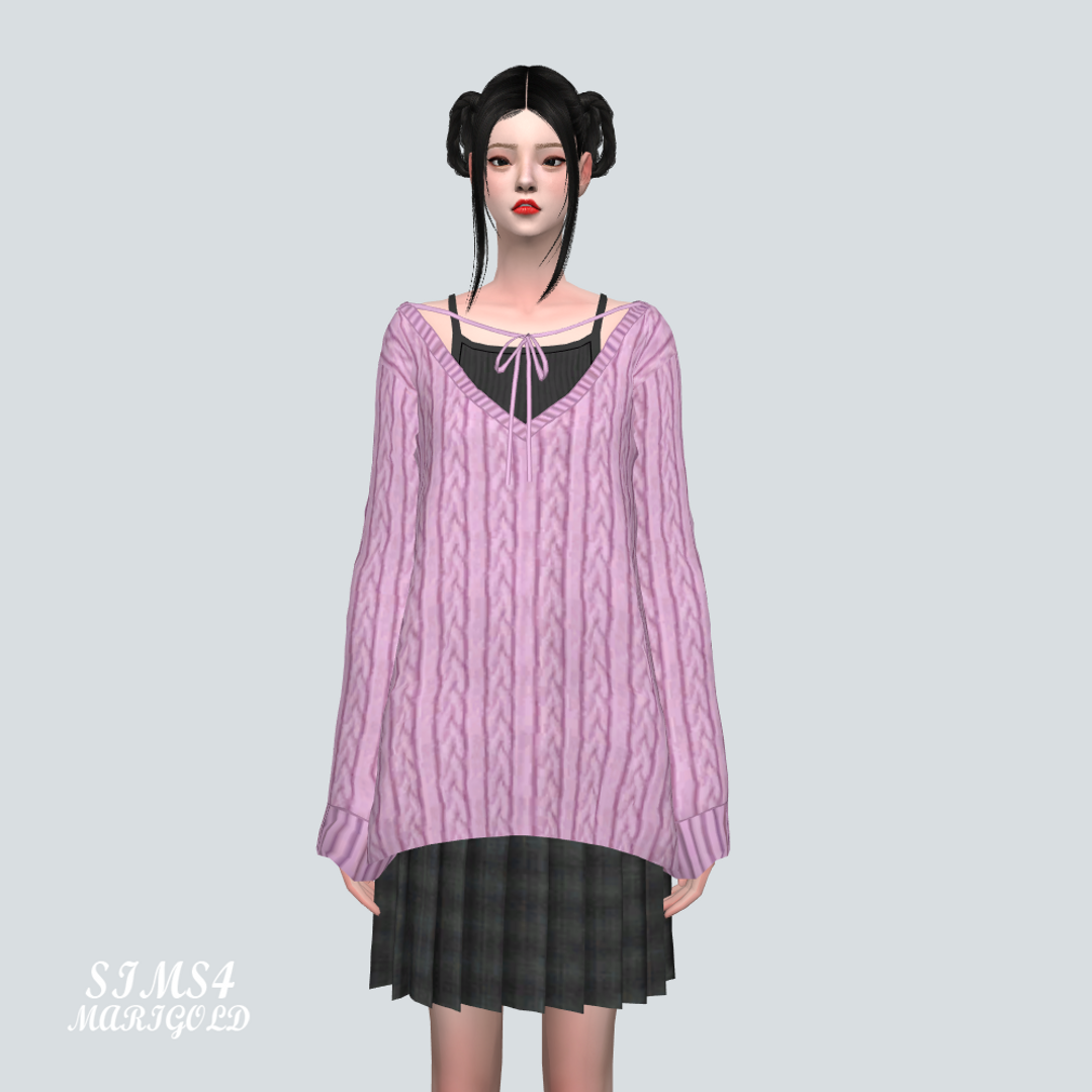 심즈4 리본 롱 스웨터에 민소매 티가 붙어있습니다.